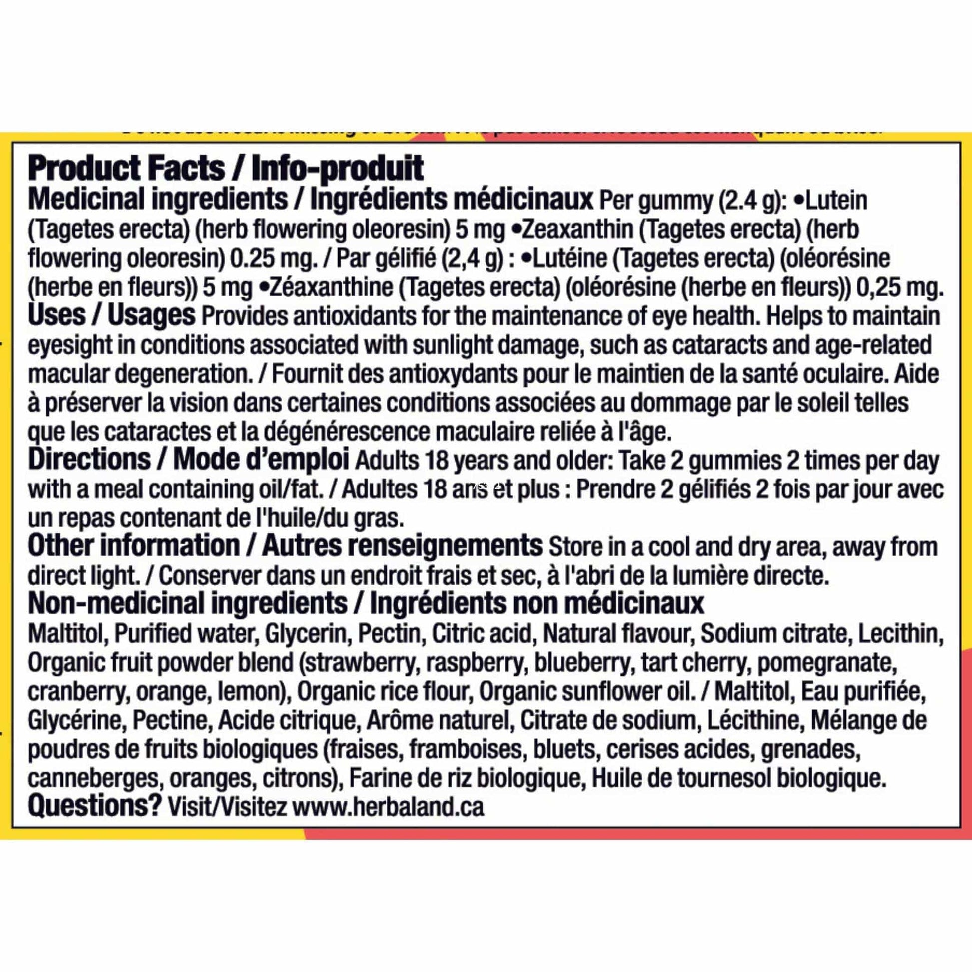 Herbaland Eye Care Gummies with Lutein Features and Benefits