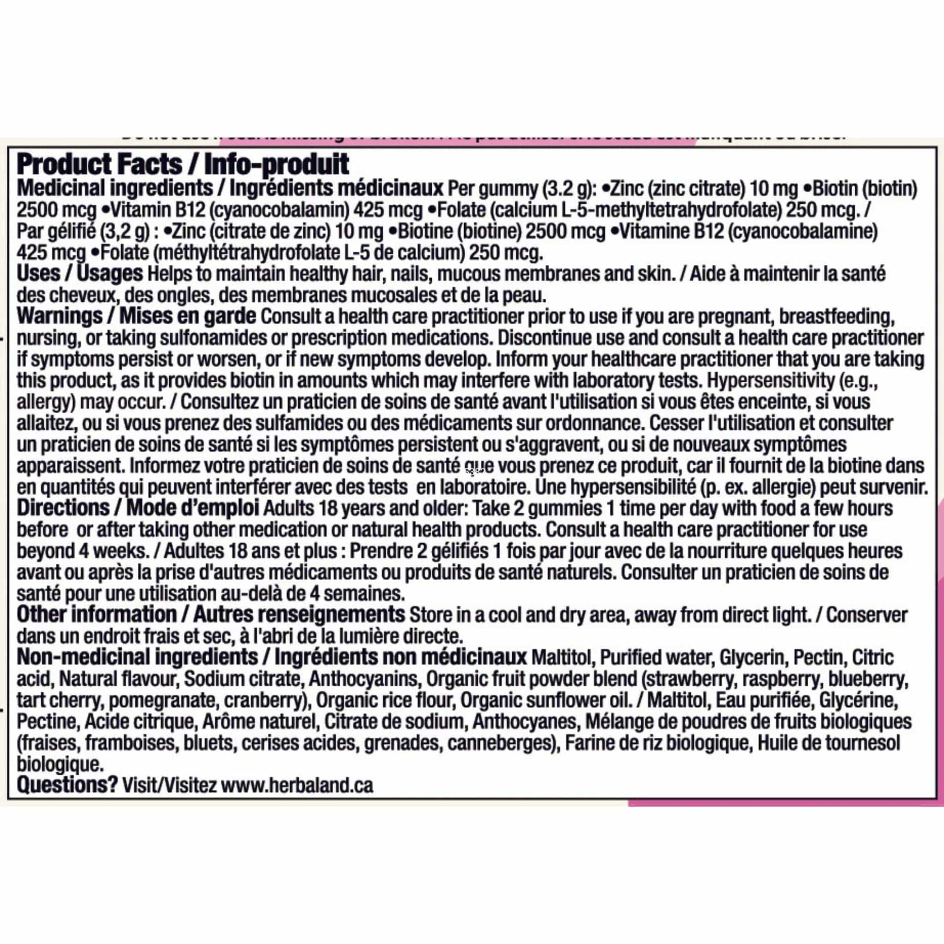 Herbaland Biotin Beauty Gummies, Biotin 2500mcg, 60 Gummies