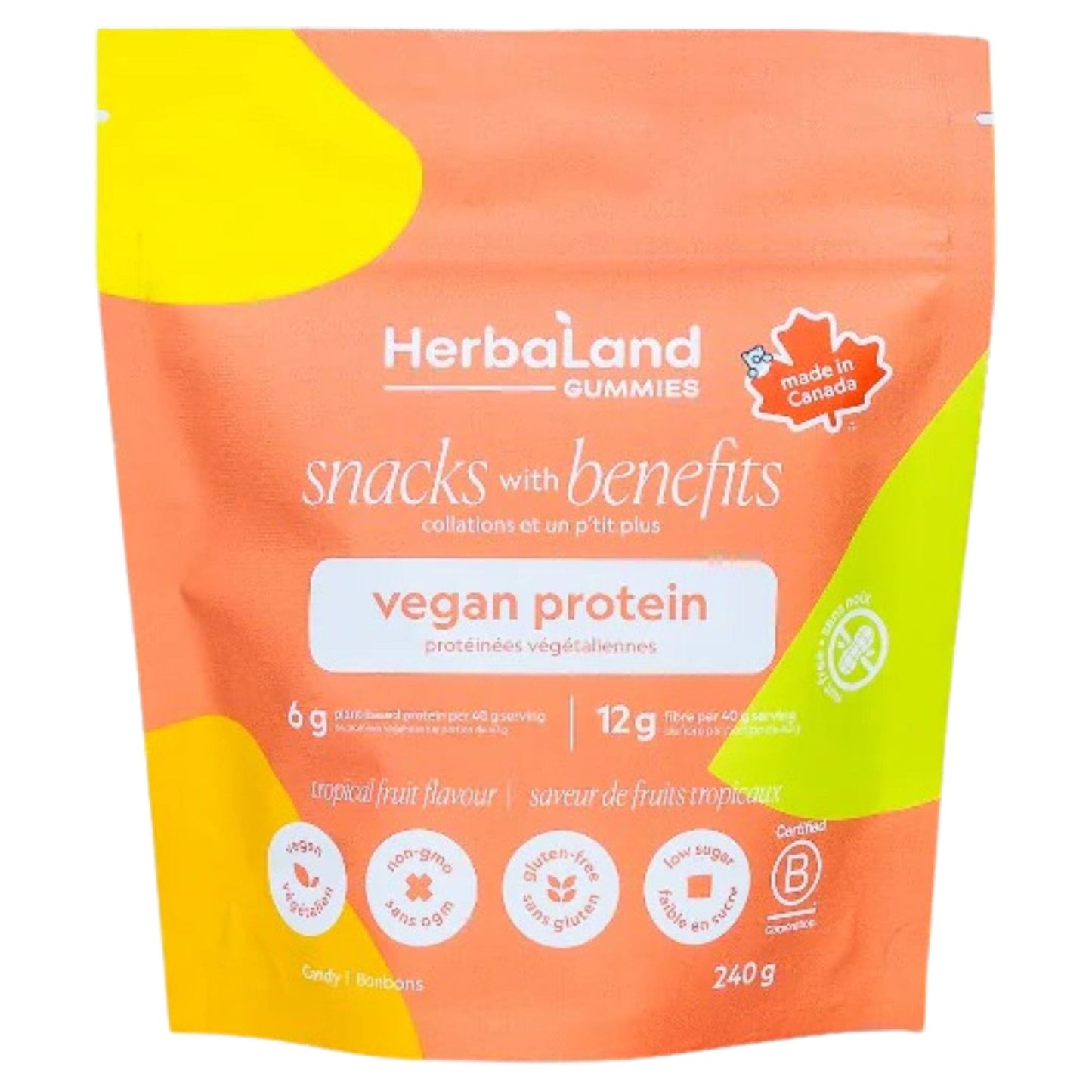 Made in Canada with high-quality ingredients, Herbaland Vegan Protein Gummies are vegan, low in sugar, gluten-free, and non-GMO.