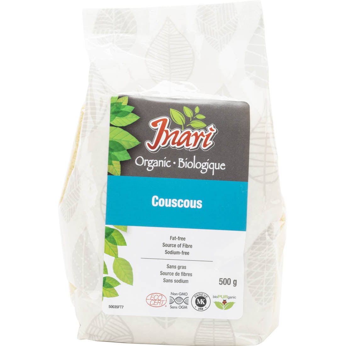 Cooking Directions: Pour Inari Organic Couscous (Regular) into a saucepan. Add an equal volume of boiling salted water and stir. Cover and let sit for 5 minutes. Add 1 tsp. of butter or olive oil. Fluff gently with a fork and serve.
