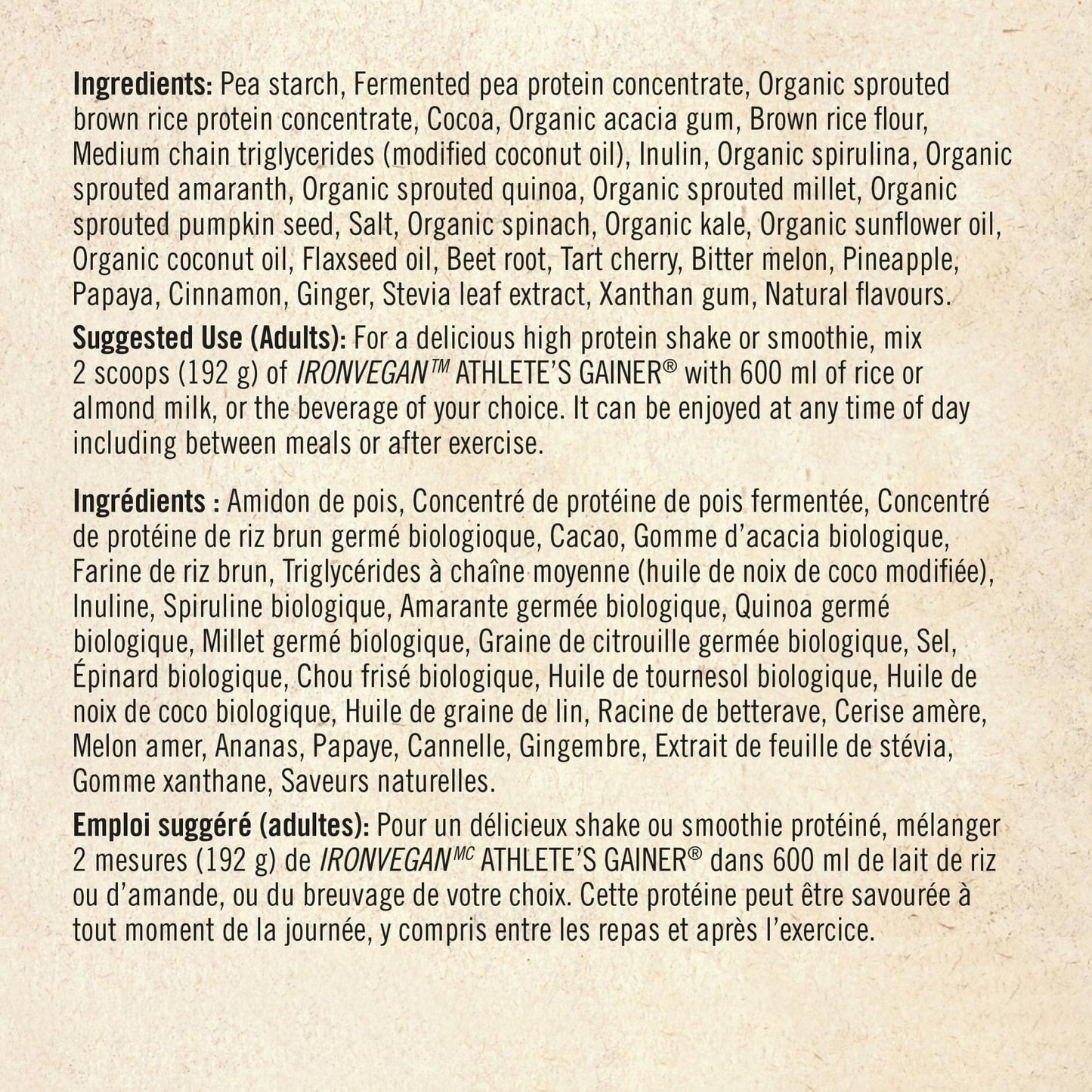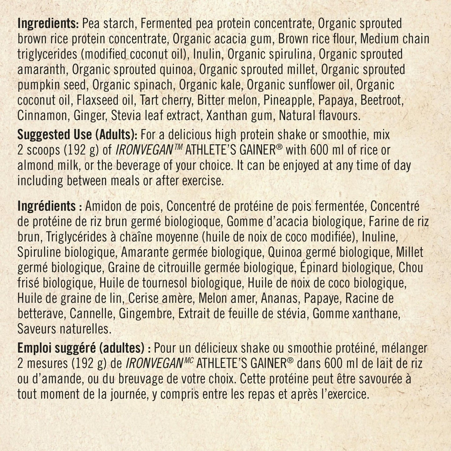 Iron Vegan Athlete's Gainer Protein (Plant Based & Non-GMO)