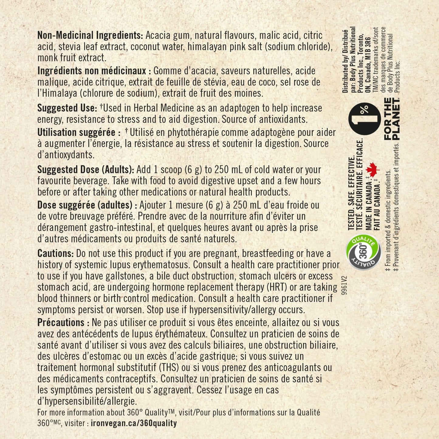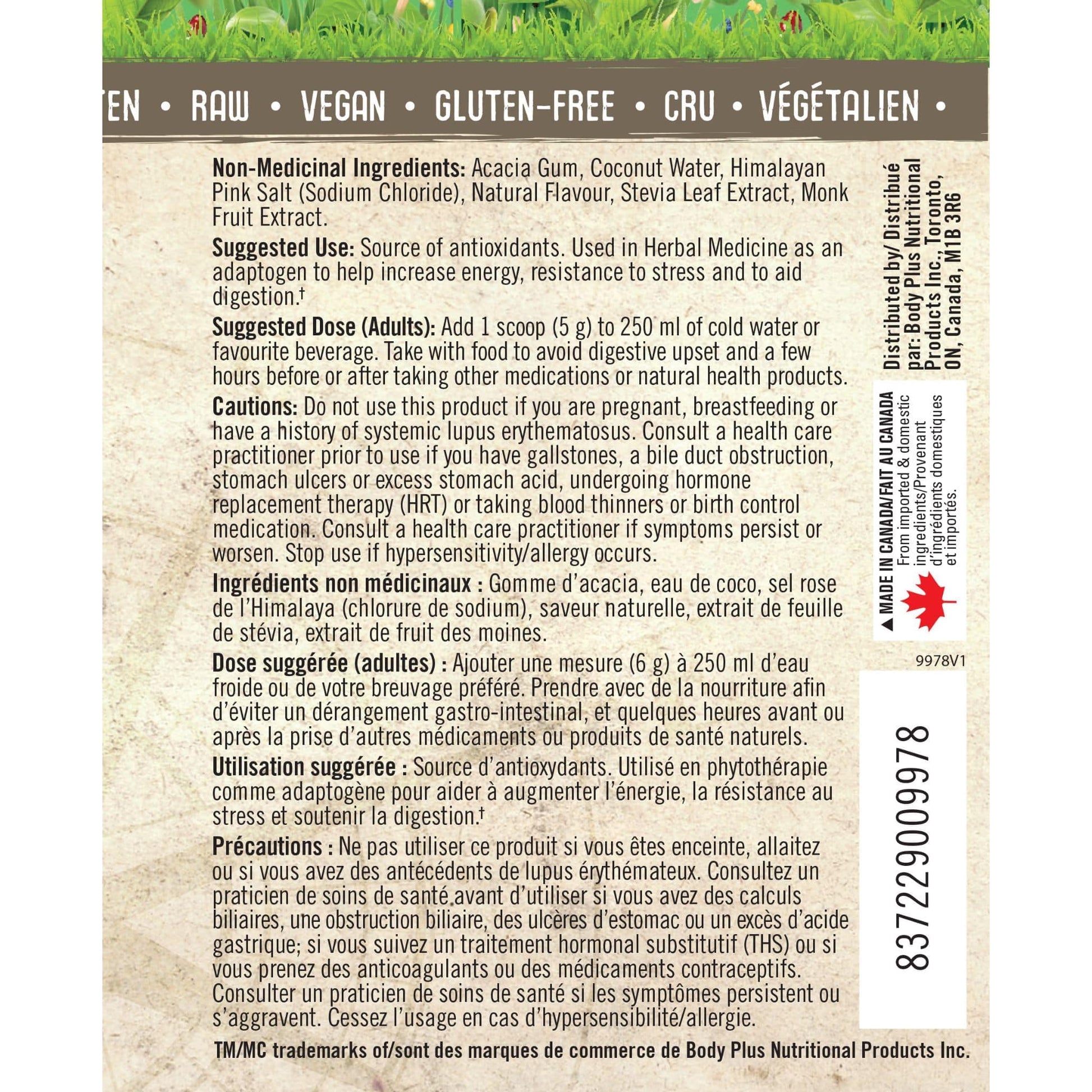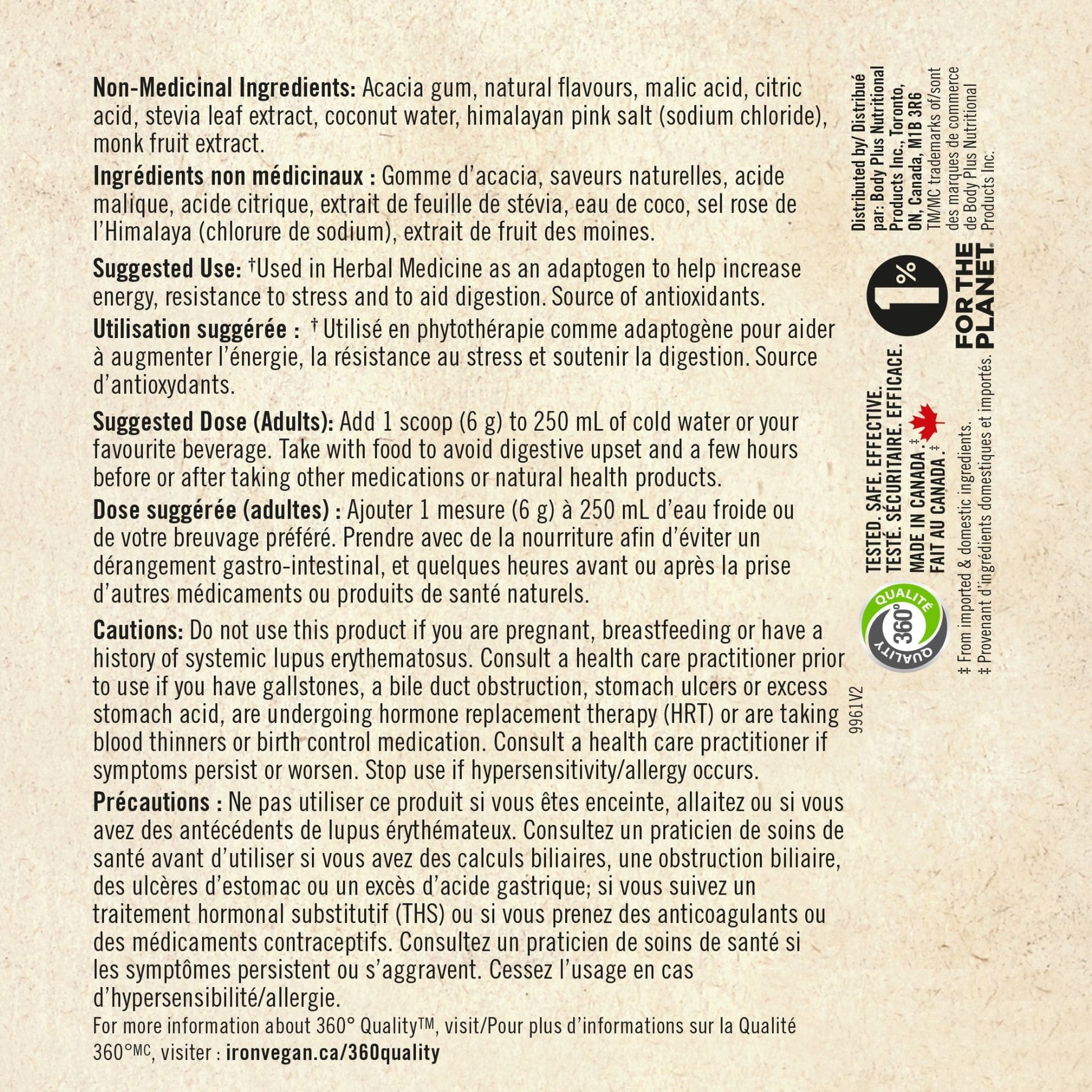 Add 1 scoop (6 g) to 250 ml of cold wateror favourite beverage. Take with food to avoid digestive upset and a fewhours before or after taking other medications or natural health products.