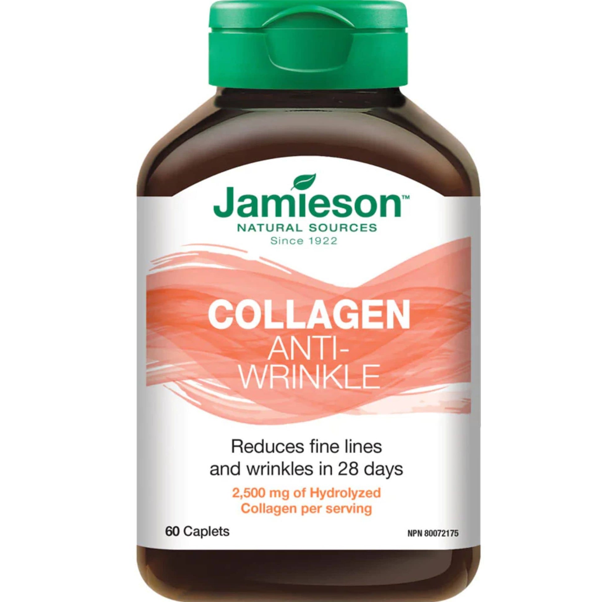 Adults: Take 3 Jamieson Collagen, Anti-Wrinkle caplets daily. Store between 15°C and 25°C, away from children, heat and moisture.