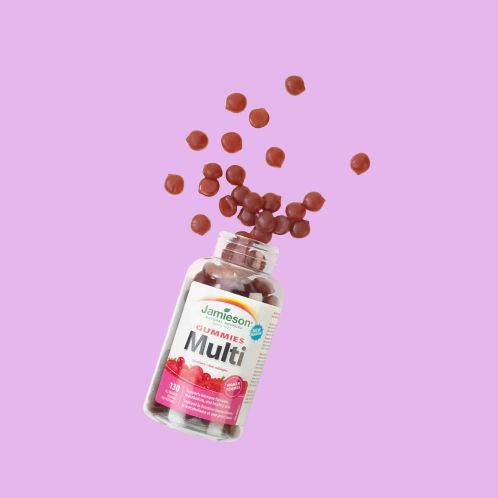 Jamieson Multivitamin Gummies for Women are formulated to support women's overall health. Each great-tasting, all-natural gummy provides additional nutritional support to help address common women's health concerns, including important minerals and vitamin D for bone health. Offered in a delicious mixed berry flavour, this complete women's multivitamin is free from aspartame and artificial colours and flavours.