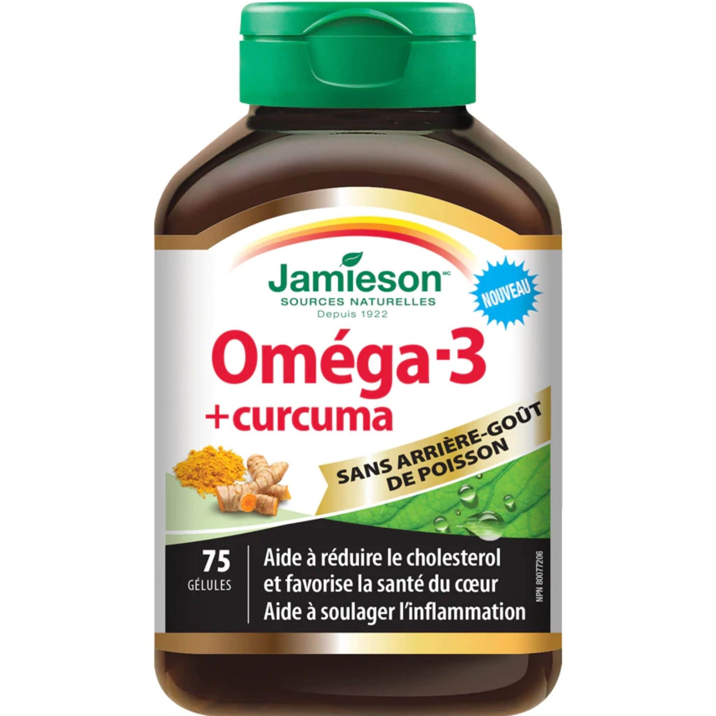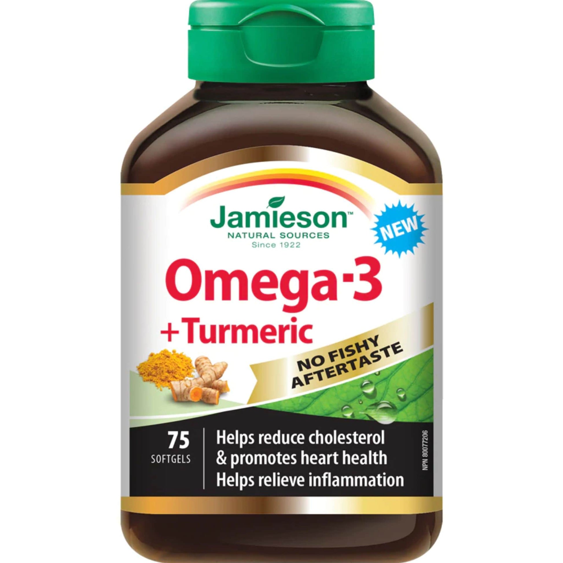 Jamieson No Fishy Aftertaste Omega-3 + Tumeric, 75 Softgels