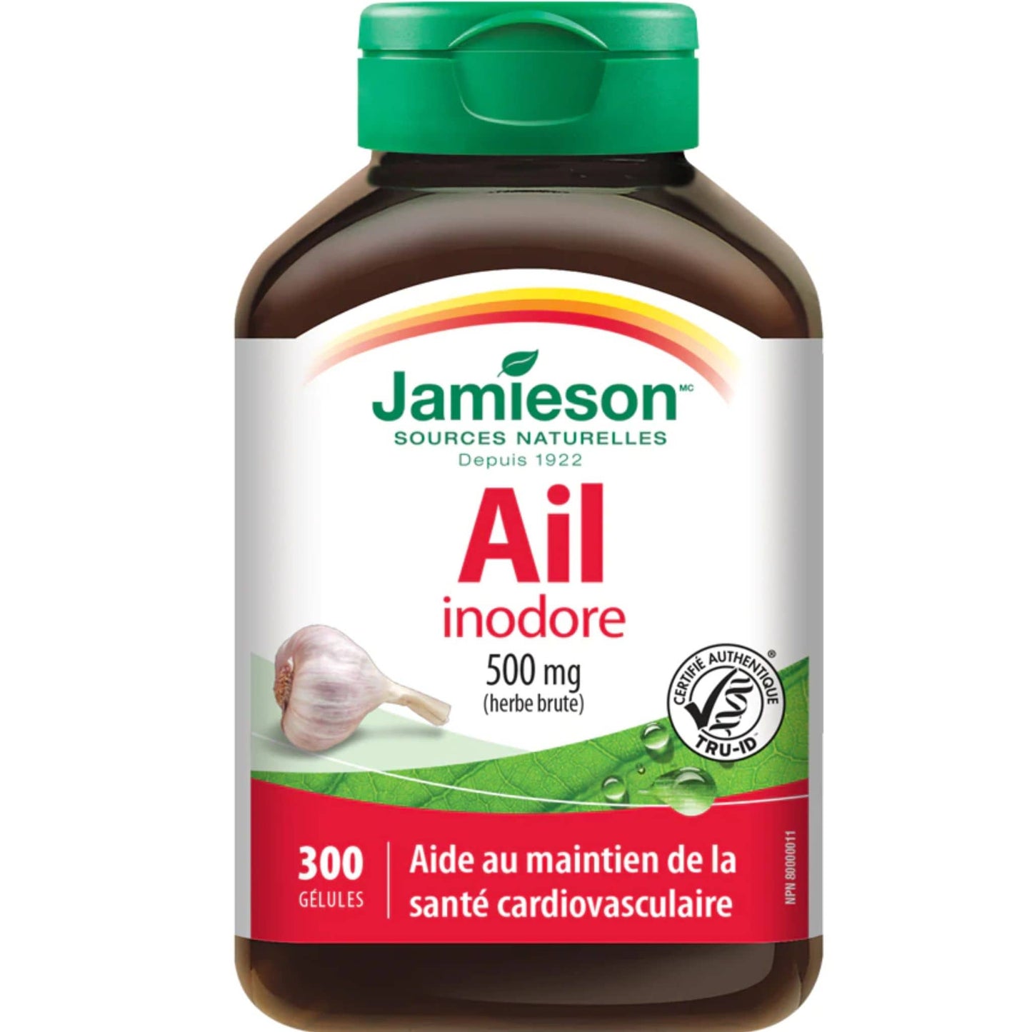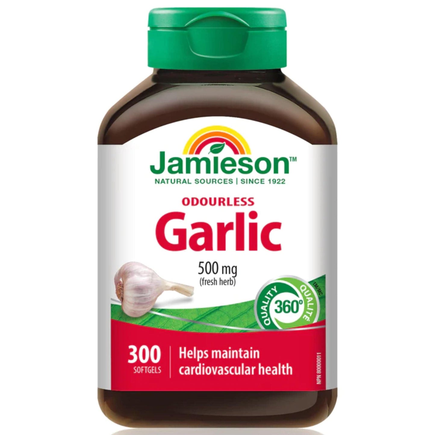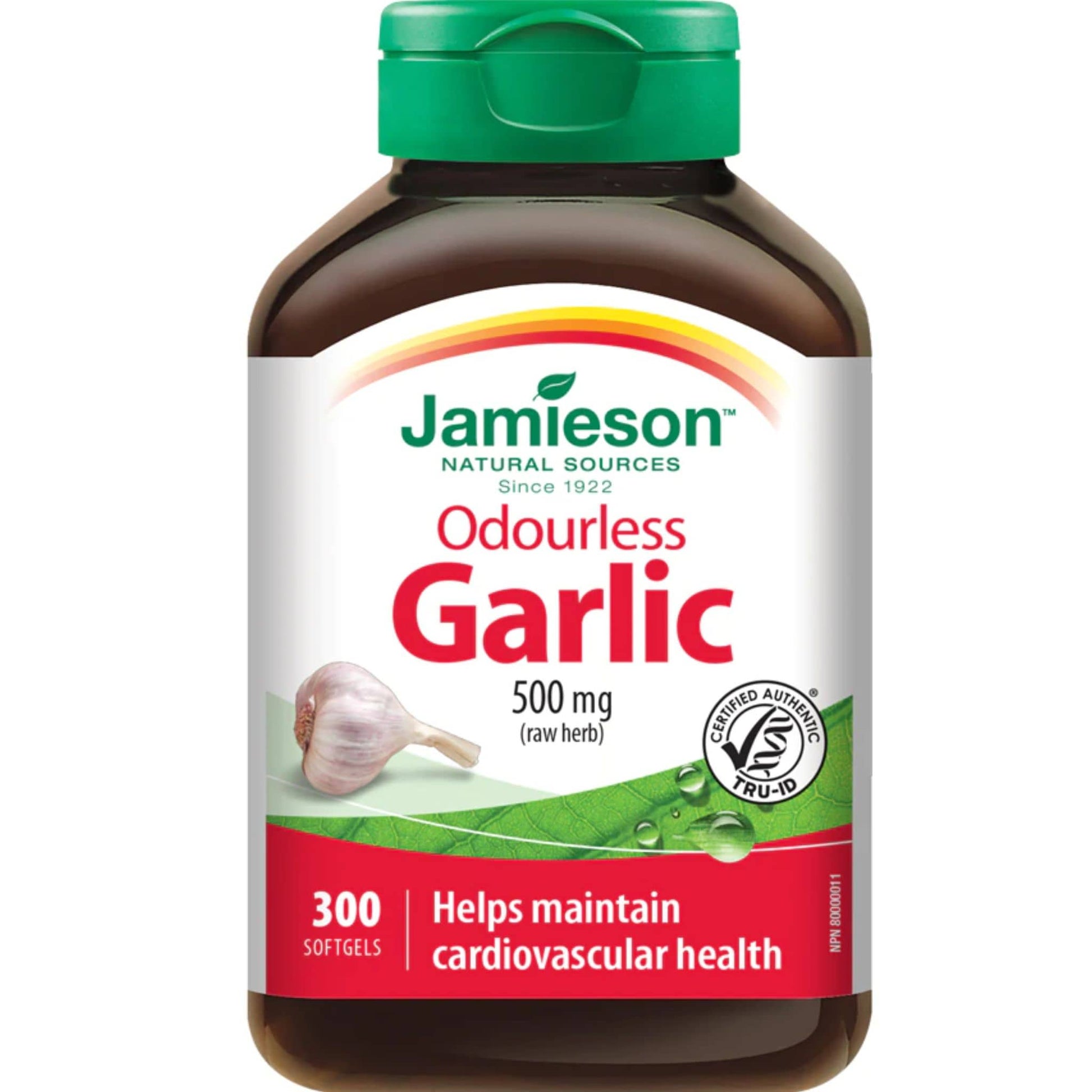 Jamieson Odourless Garlic 500mg Raw Herb, 300 Softgels