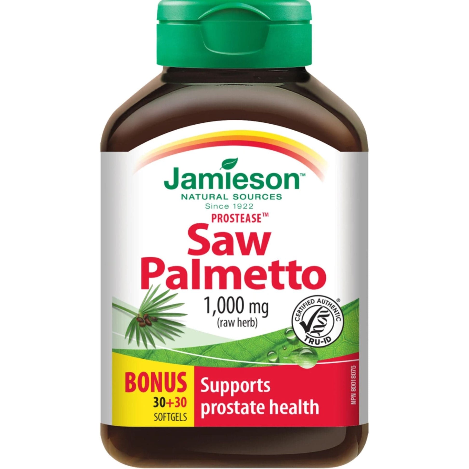 Jamieson Prostease Saw Palmetto 1,000mg, Raw herb, 60 Softgels Details
