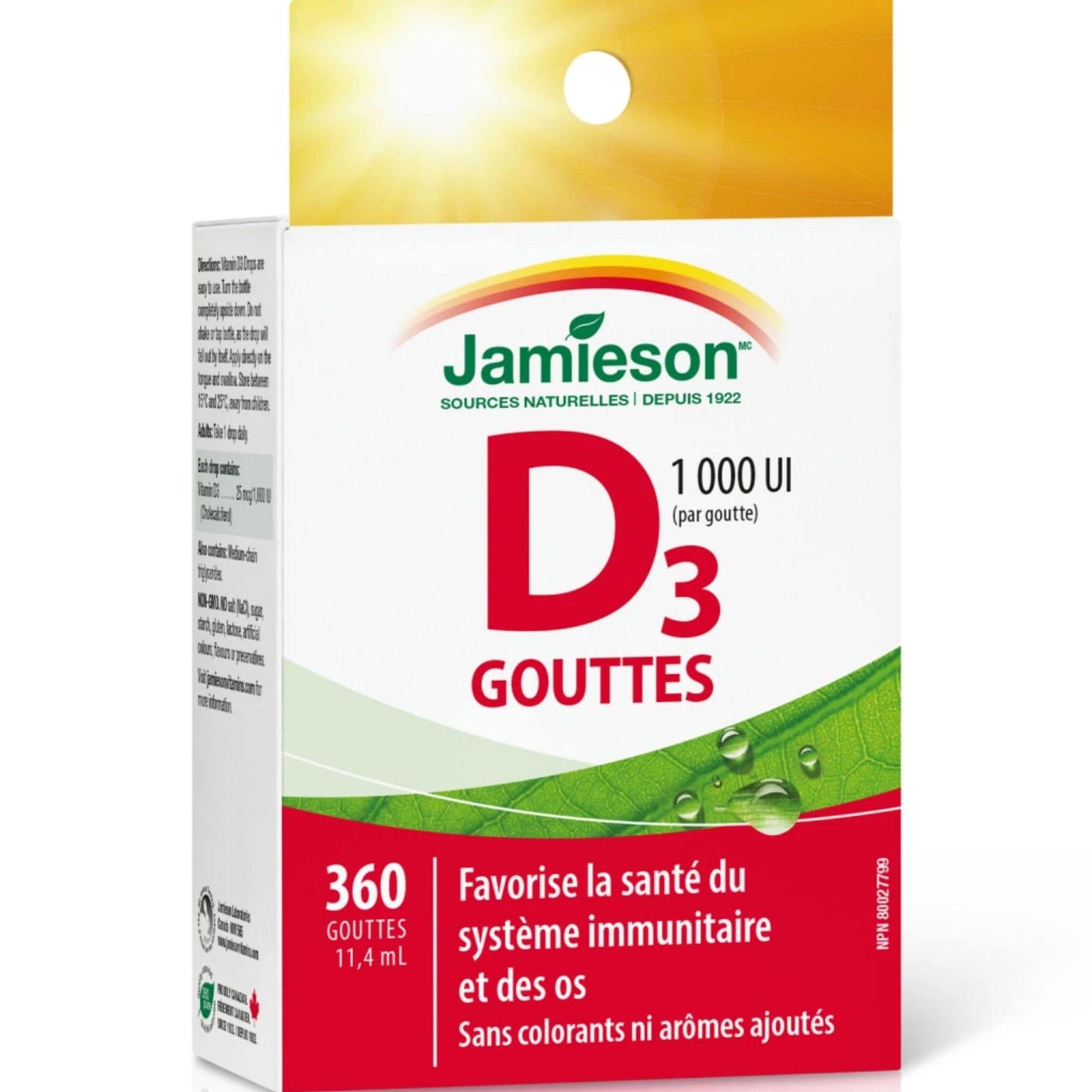 Jamieson D3 Drops is a potent format that delivers 1,000 IU of pure tasteless vitamin D3 per drop.