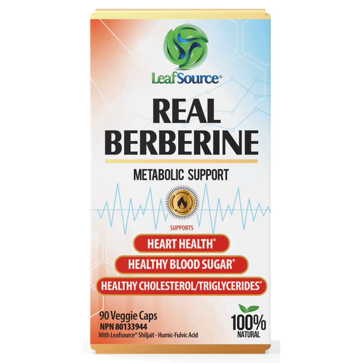LeafSource Real Berberine delivers 500 mg of clinically studied Berberine HCl, enhanced with Ceylon Cinnamon and Shilajit-derived humic and fulvic acids for superior absorption and metabolic benefits. Supports healthy blood sugar, cholesterol, and energy balance. Vegetarian and Made in Canada.