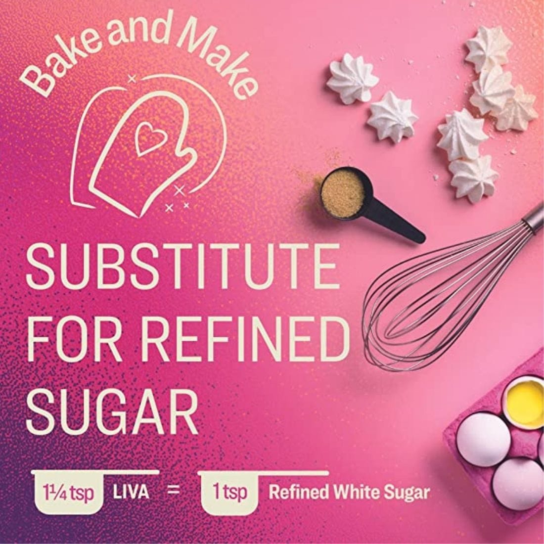 LIVA raw date sugar contains only dehydrated, ground organic dates and all of the whole food goodness they contain. For your favourite beverages use the convenient sachets or choose the 400 g canister to ensure you have LIVA on hand for all of your sweetening and baking needs. And, only LIVA offers an almost fully dissolvable date sugar making it the ideal substitute for traditional sweeteners.