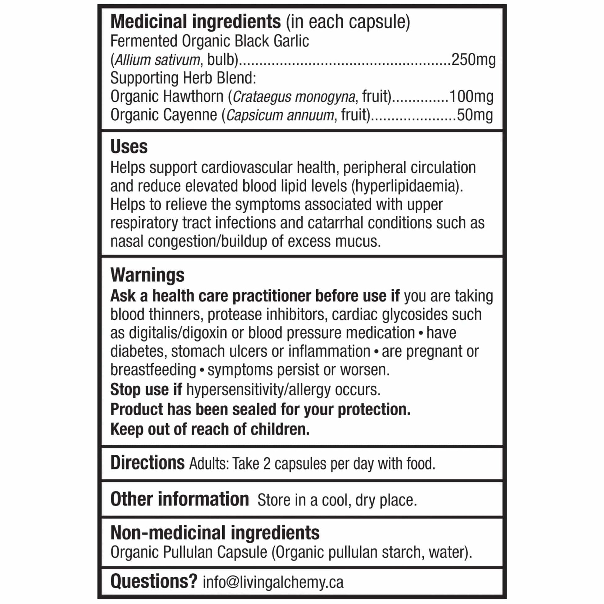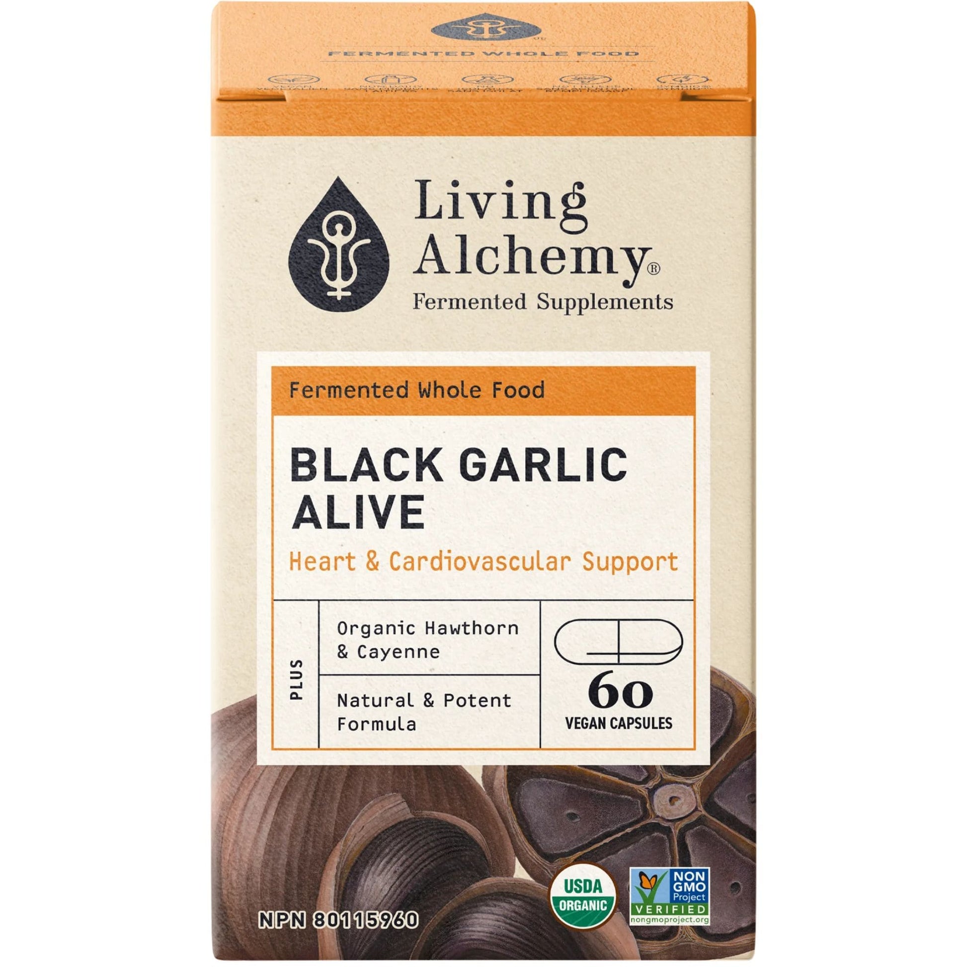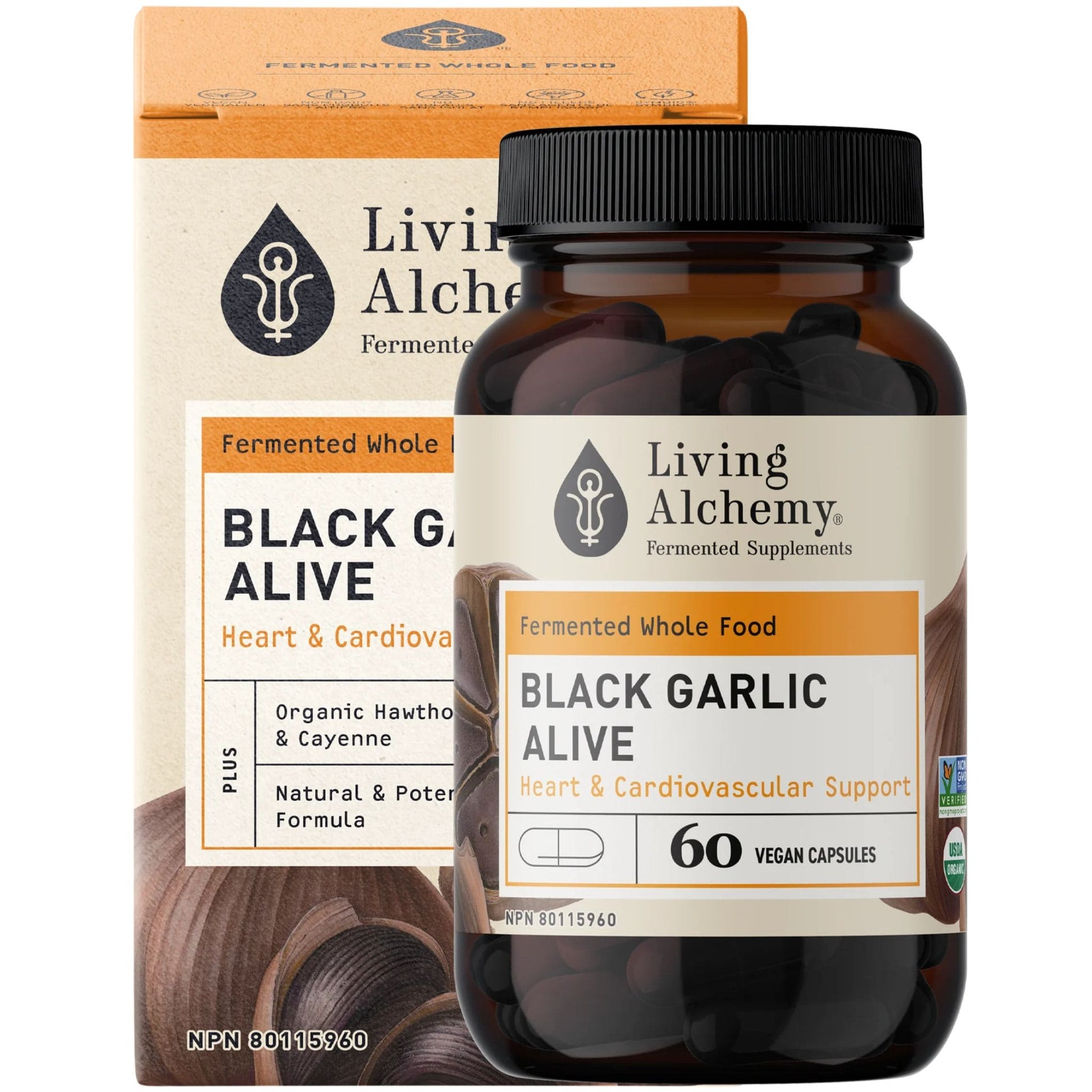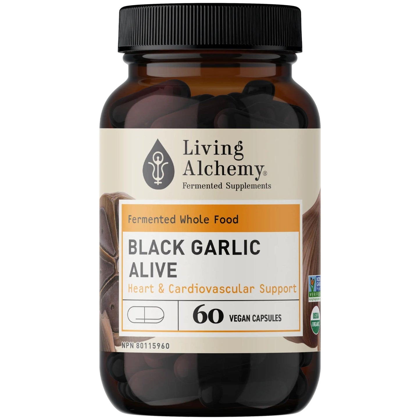 • BLACK GARLIC Alive is fermented organic whole garlic aged to perfection for cardiovascular and circulatory support, while promoting healthy immunity, ageing and wellbeing.