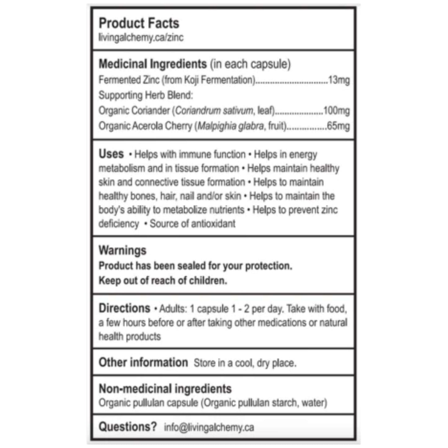 Living Alchemy Zinc Alive 13 mg, 60 Capsules Details