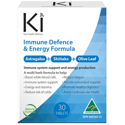 Ki Immune Defence & Energy Formula is high potency herbal medicine to help protect against viral infections, boost immunity and increase energy when recovering from illness. Formulated with high potency Herbal Medicines the Ki formulas strengthen the immune system by boosting white blood cells to help defend against viral attacks.The nature of KI is to support the immune system to help fight off infection and illness.