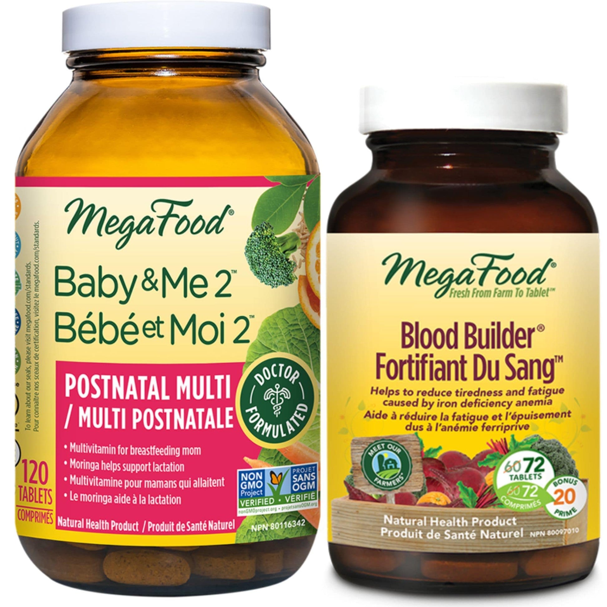 Nourish yourself, mama! MegaFood's Baby & Me2 Postnatal Multi is crafted for new & nursing moms, offering optimal levels of essential nutrients, including vitamins C, D, & E, choline for baby's brain development, and organic moringa leaf to support milk production.
