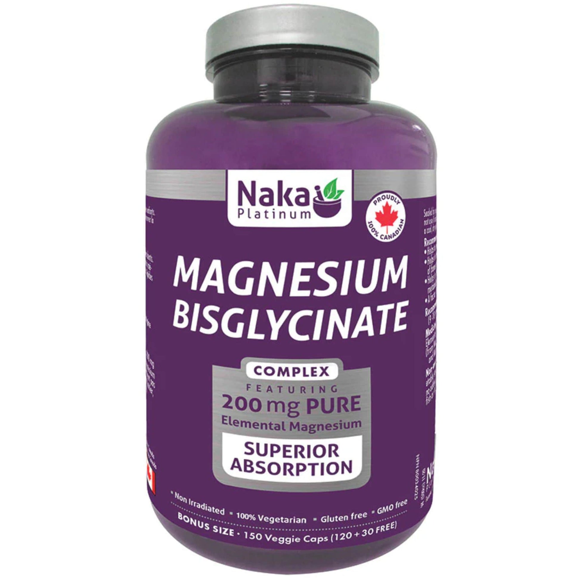 Naka Platinum Magnesium Bisglycinate 200mg, Supports Muscle and Bone Health, 150-300 Vegetable Capsules