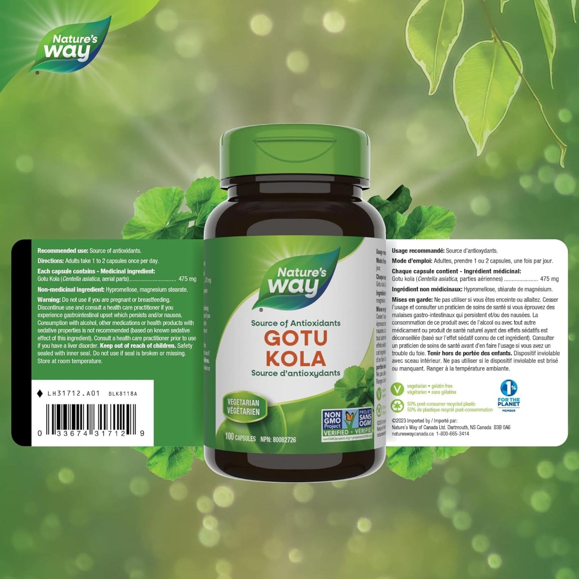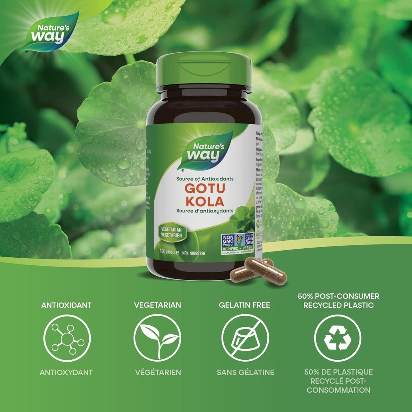 Take 2 capsules of Nature's Way Gotu Kola daily, preferably with food.