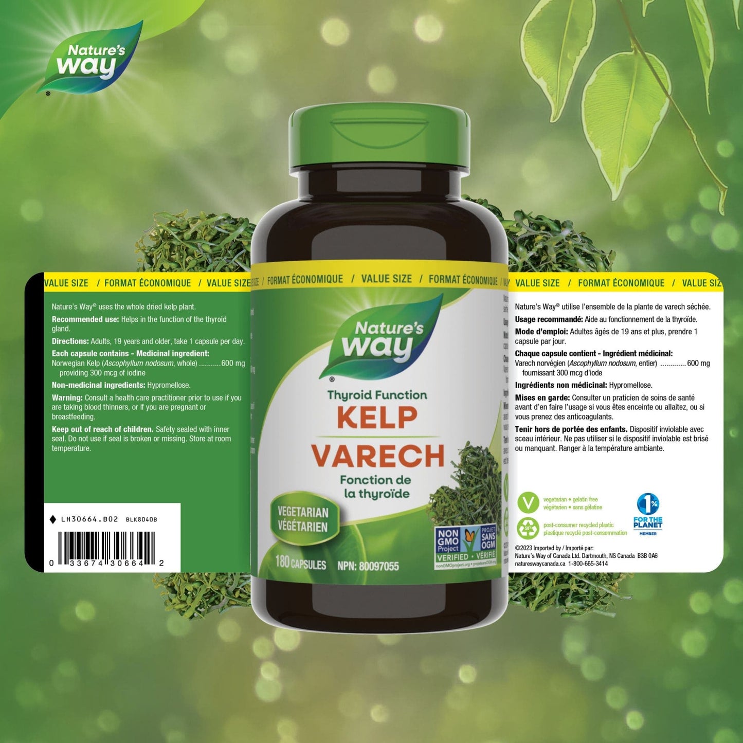 Norwegian Kelp is a nutritionally-rich seaweed. This particular species grows in deep ocean water away from heavy metals and toxins. Nature's Way® uses whole dried plant guaranteed to contain 0.06% iodine.