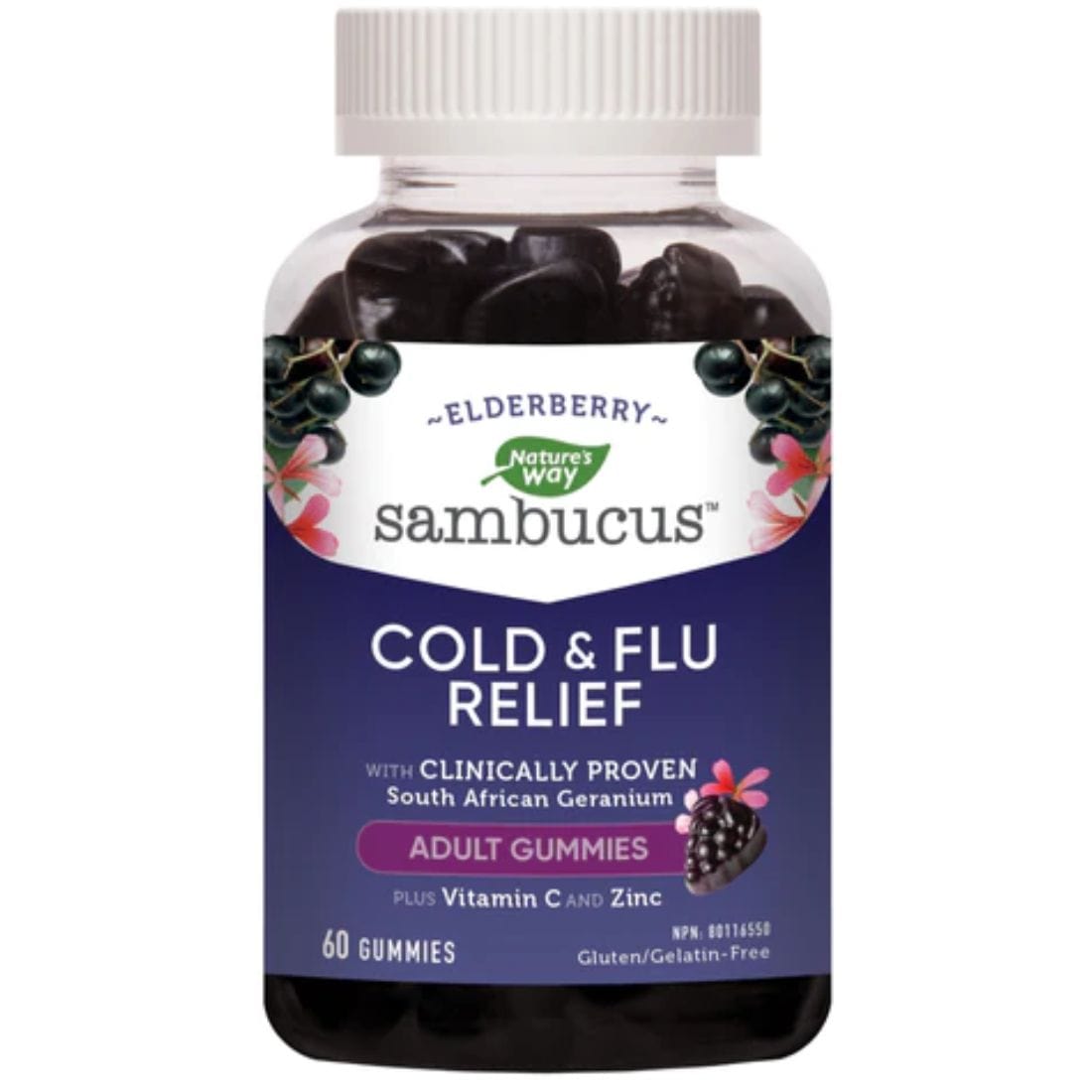 Sambucus Cold & Flu Relief Adult Gummies help to shorten the duration and reduce symptom severity of the common cold, bronchitis, laryngitis and pharyngitis. Plus the added benefits of Vitamin C and Zinc.