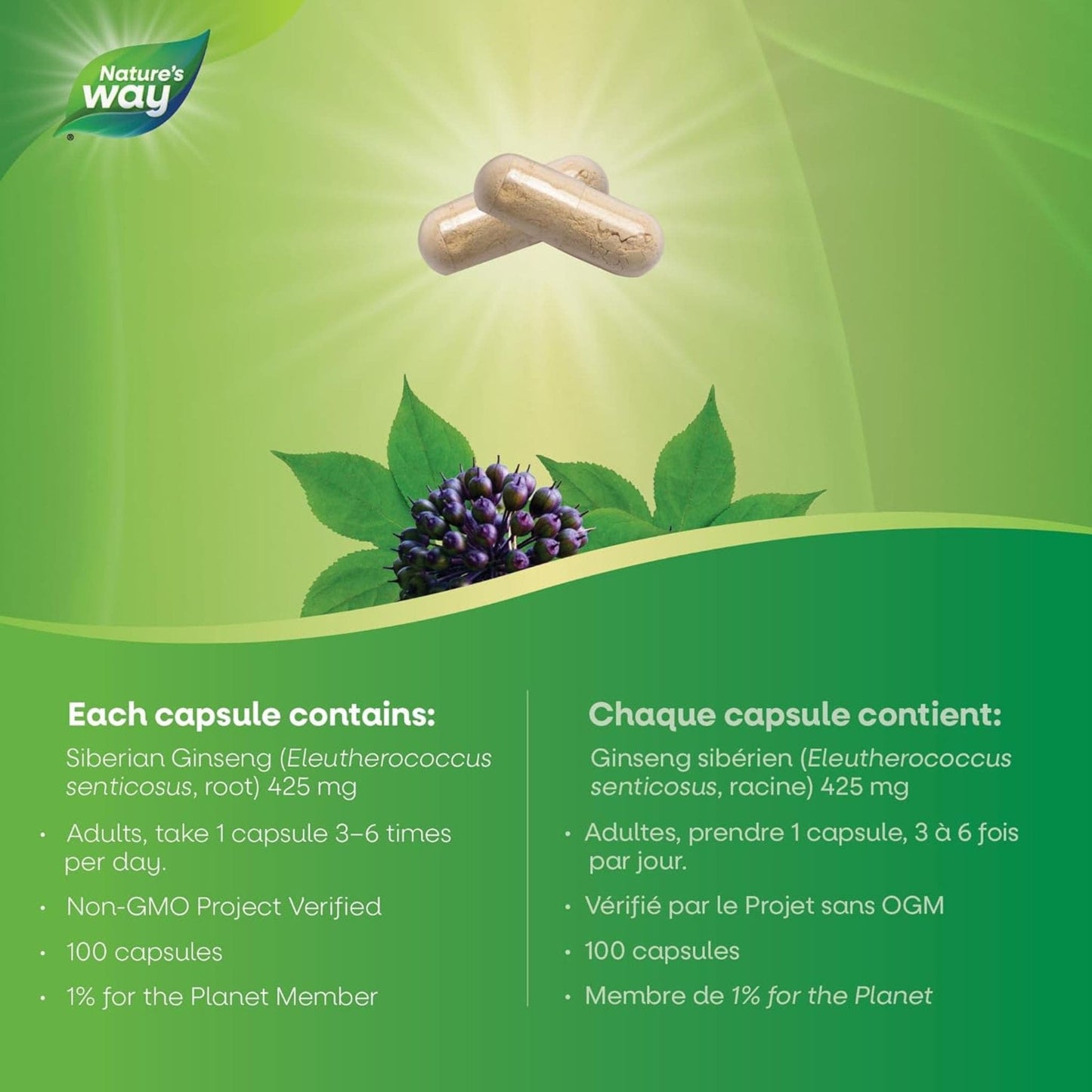 Nature's Way Siberian Ginseng Root, 100 Vegetable Capsules