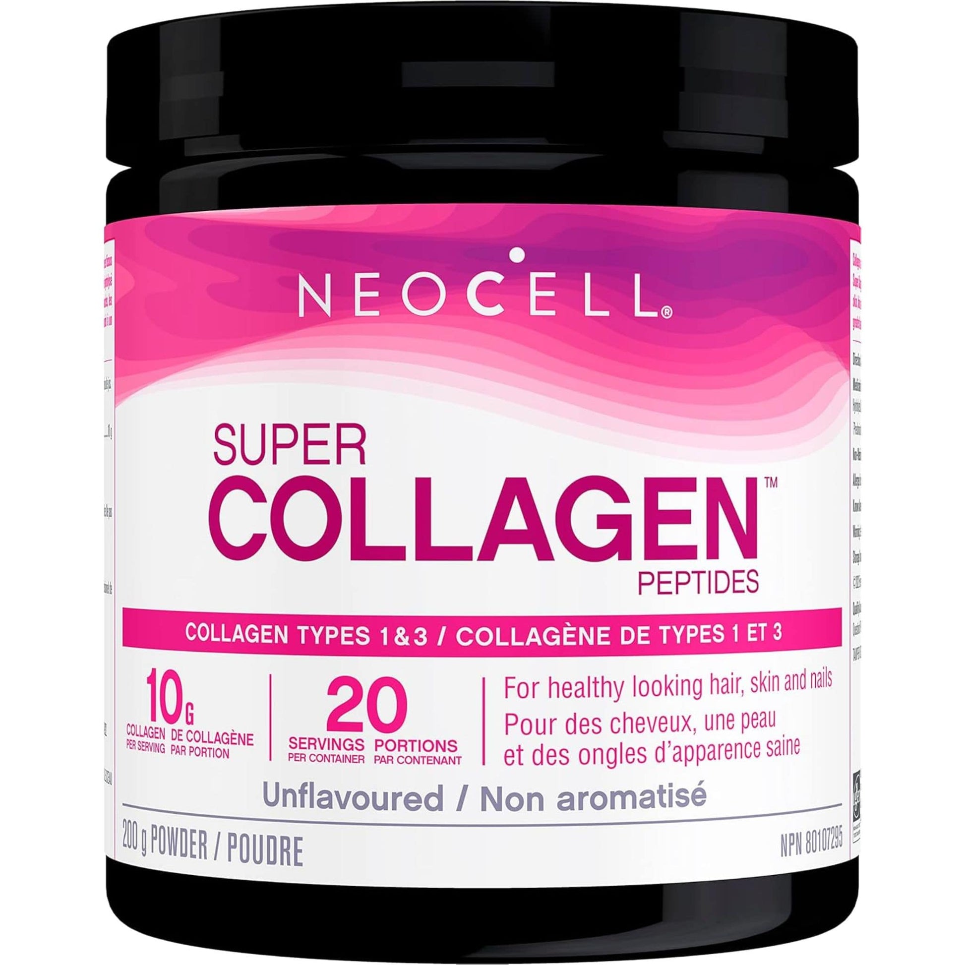NeoCell Super Collagen Powder, Hydrolyzed Collagen Peptides Type 1 and 3 (Gluten-Free & Grass-Fed), 200g