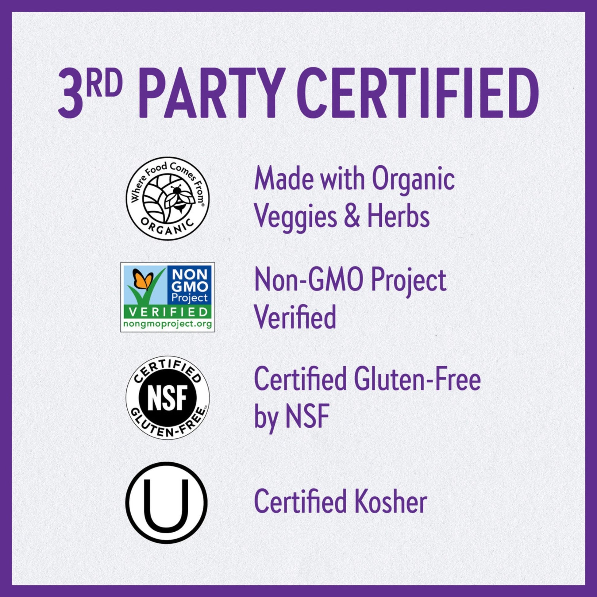Targeted Herbal Blends: Cultured, organic herbal blends provide energy & stress support and promote heart and immune system health.
