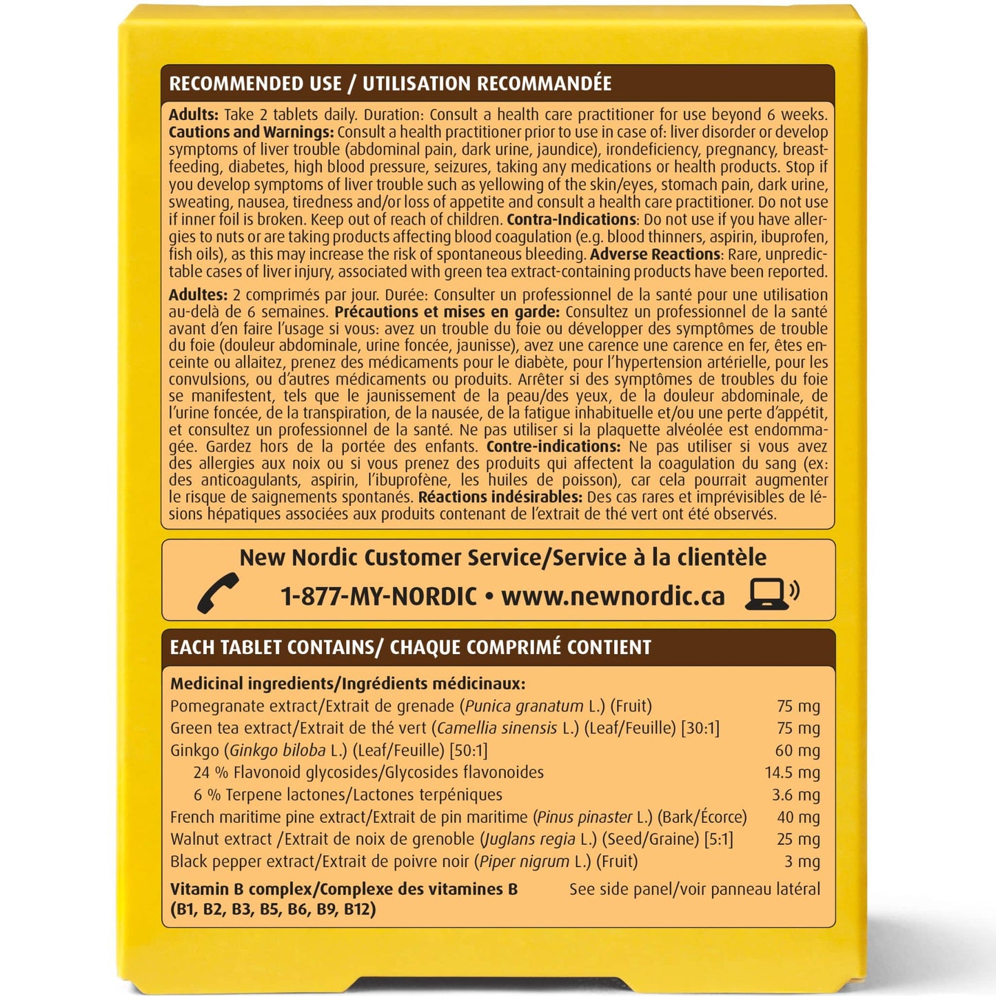 CAUTIONS & WARNINGS: Consult a health care practitioner prior to use if you have a liver disorder or develop symptoms of liver trouble (such as abdominal pain, dark urine or jaundice), if you have an iron deficiency, are pregnant or breastfeeding, are taking medications for diabetes, high blood pressure, or seizures, or any other medications or natural health products. Do not use if you are taking products that affect blood coagulation (e.g. blood thinners, clotting factor replacements, acetylsalicylic acid, ibuprofen, fish oils, vitamin E) as this may increase the risk of spontaneous bleeding. Do not take if you have allergies to walnuts or tree nuts.