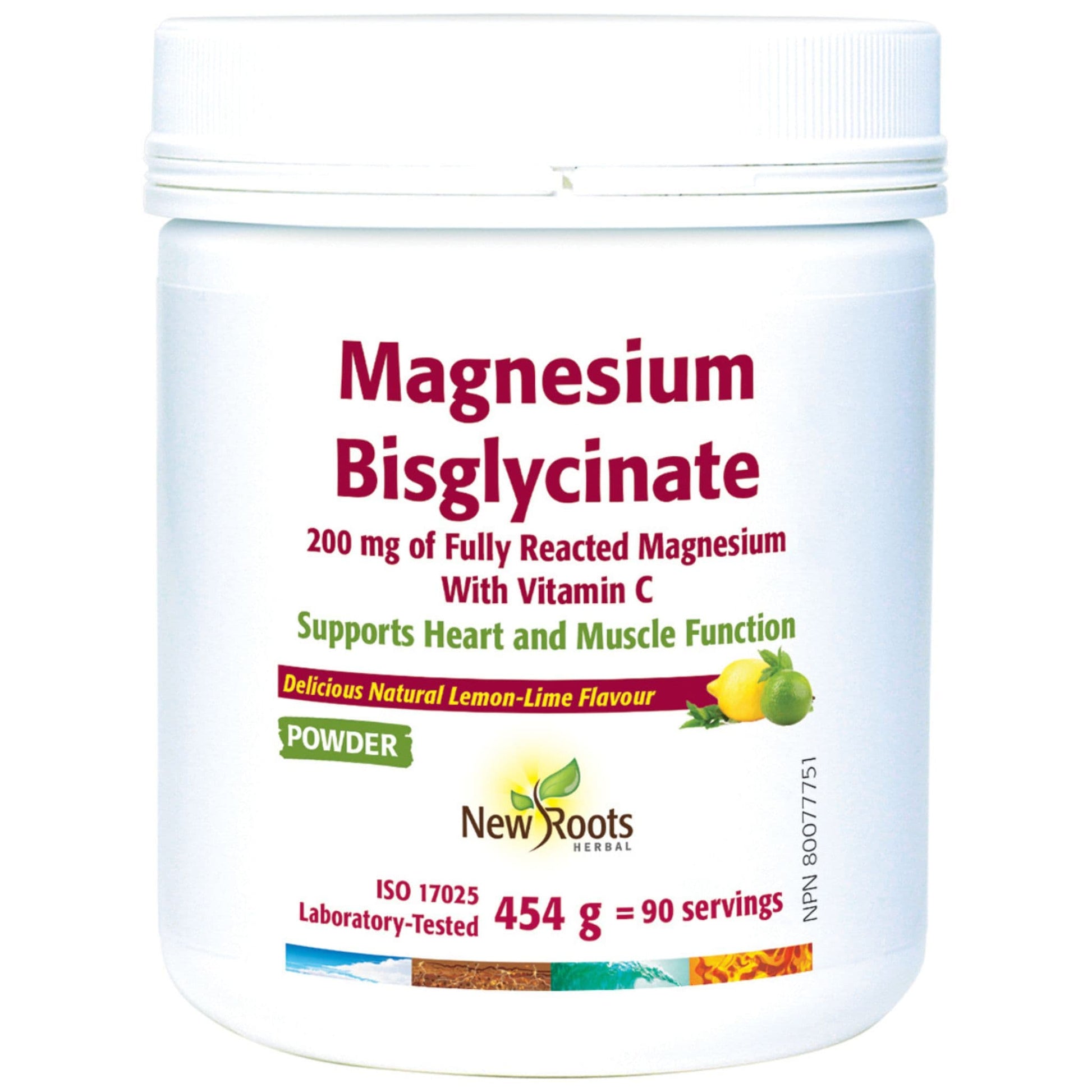 New Roots Magnesium Bisglycinate 200mg, Fully Reacted Magnesium Powder With Vitamin C, 226g-454g