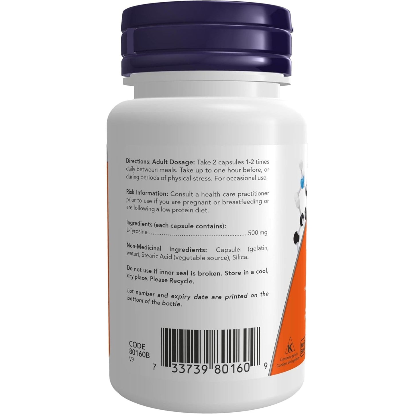 Adult: Take 2 NOW L - Tyrosine 500 mg capsules 1-2 times daily between meals. Take up to one hour before, or during periods of physical stress. For occasional use.