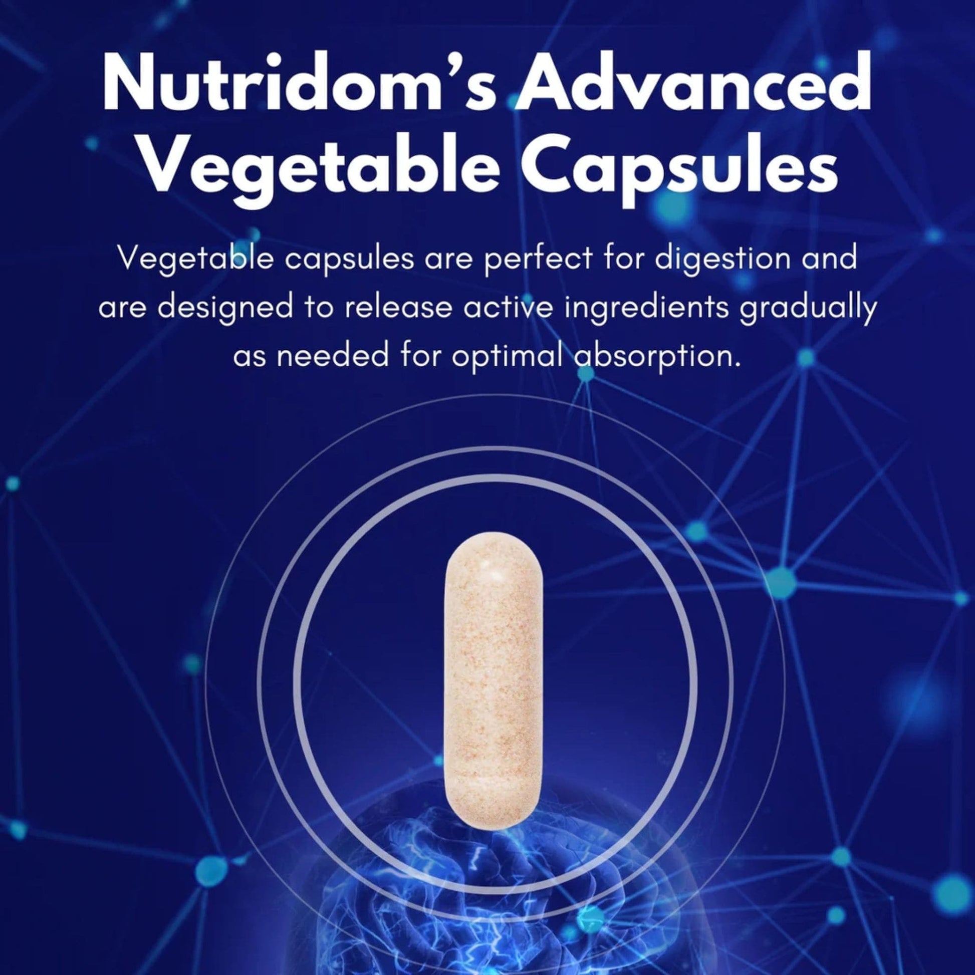 Each bottle contains 60 vegetable capsules, with a recommended dosage of just two capsules a day, ensuring easy incorporation into your daily routine. Nutridom's advanced vegetable capsules are 100% vegan and free from additives, ethanol, and hexane. Additionally, this supplement is free of eggs, wheat, soy, gluten, corn, dairy, tree nuts, and peanuts, making it suitable for various dietary preferences.