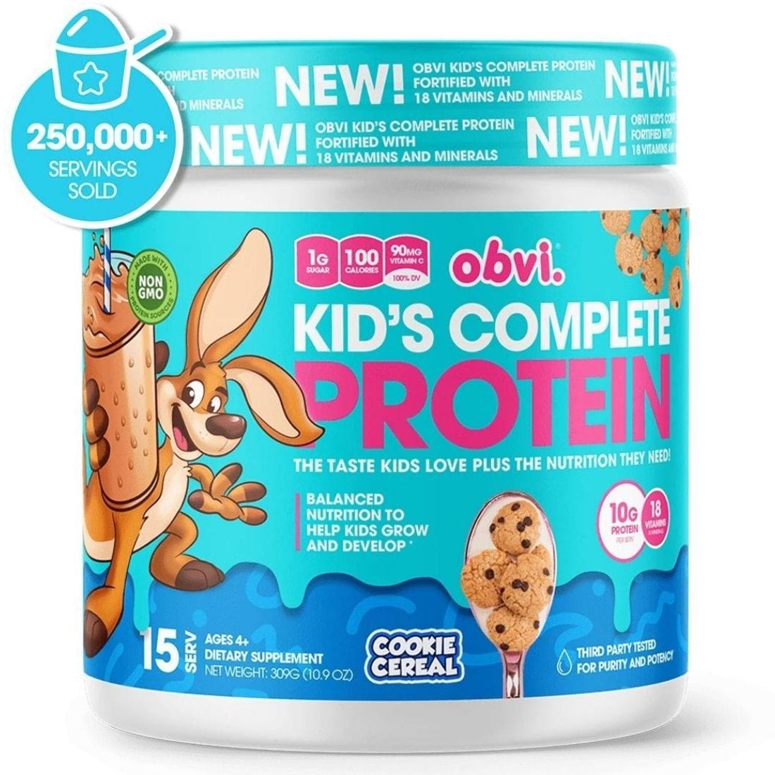 Obvi Kid’s Complete Protein, formulated with your kid’s needs in mind, is a great-tasting, highly nutritious milk shake. Just one 8 oz. serving supplies 10 grams of complete protein along with 18 Vitamins and Minerals.