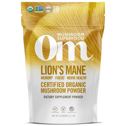 OM Mushroom Organic Lions Mane Mushroom Powder, 60g