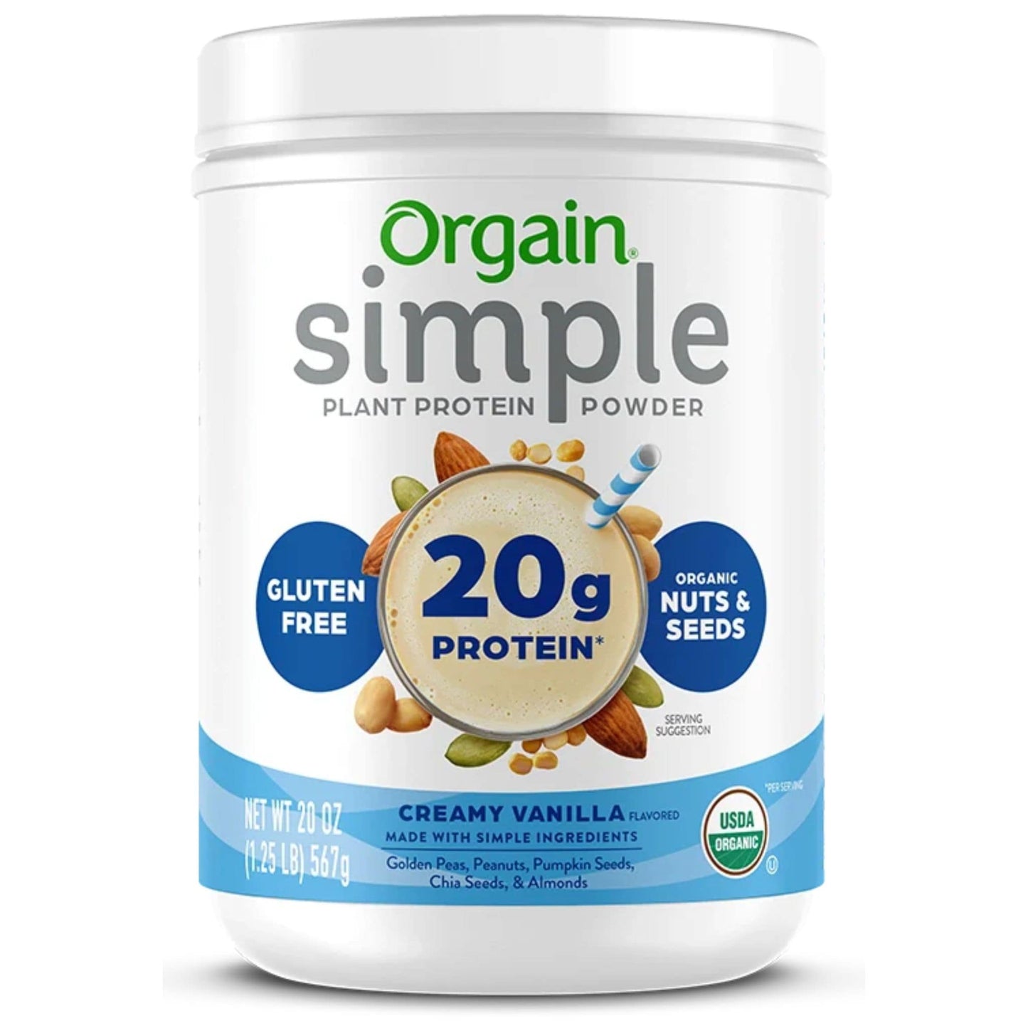 Orgain Simple Organic Plant Protein Powder offers clean, plant-based nutrition with 20g of protein per serving from a handful of organic nuts and seeds. Made with simple, high-quality ingredients, this vegan protein powder is gluten-free, non-GMO, and free from soy and dairy.