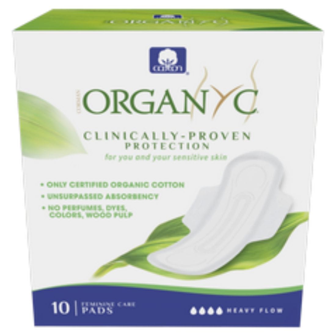 Organ(y)c Feminine Pads with Wings, 100% Organic Cotton, 10 Pads