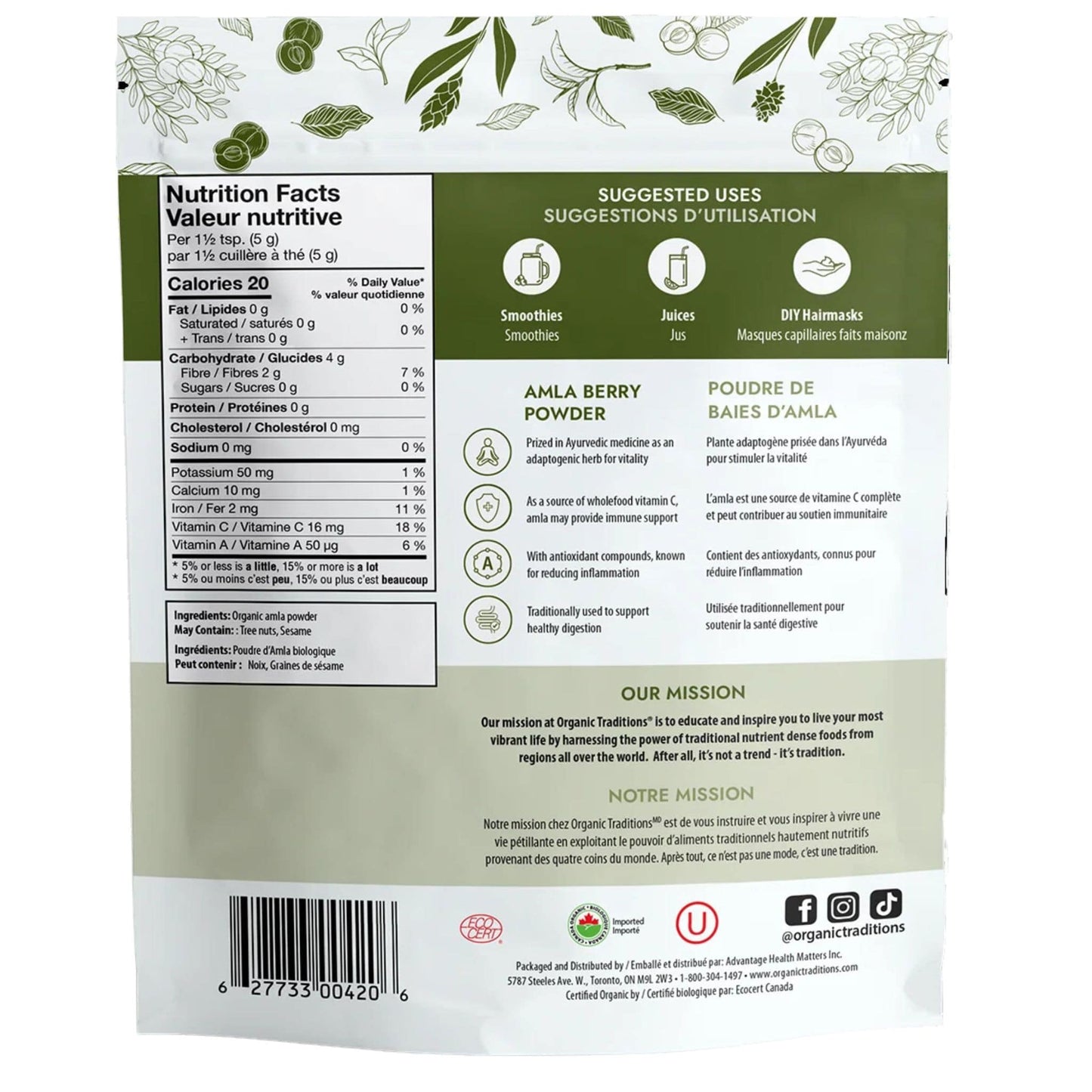 Experience the power of Organic Traditions Amla Berry Powder, also known as Indian Gooseberry. This nutrient-dense superfood is a rich source of vitamins A and C, and iron. Ideal for smoothies, juices, and DIY hair and skin masks. Non-GMO, gluten-free, and dairy-free.
