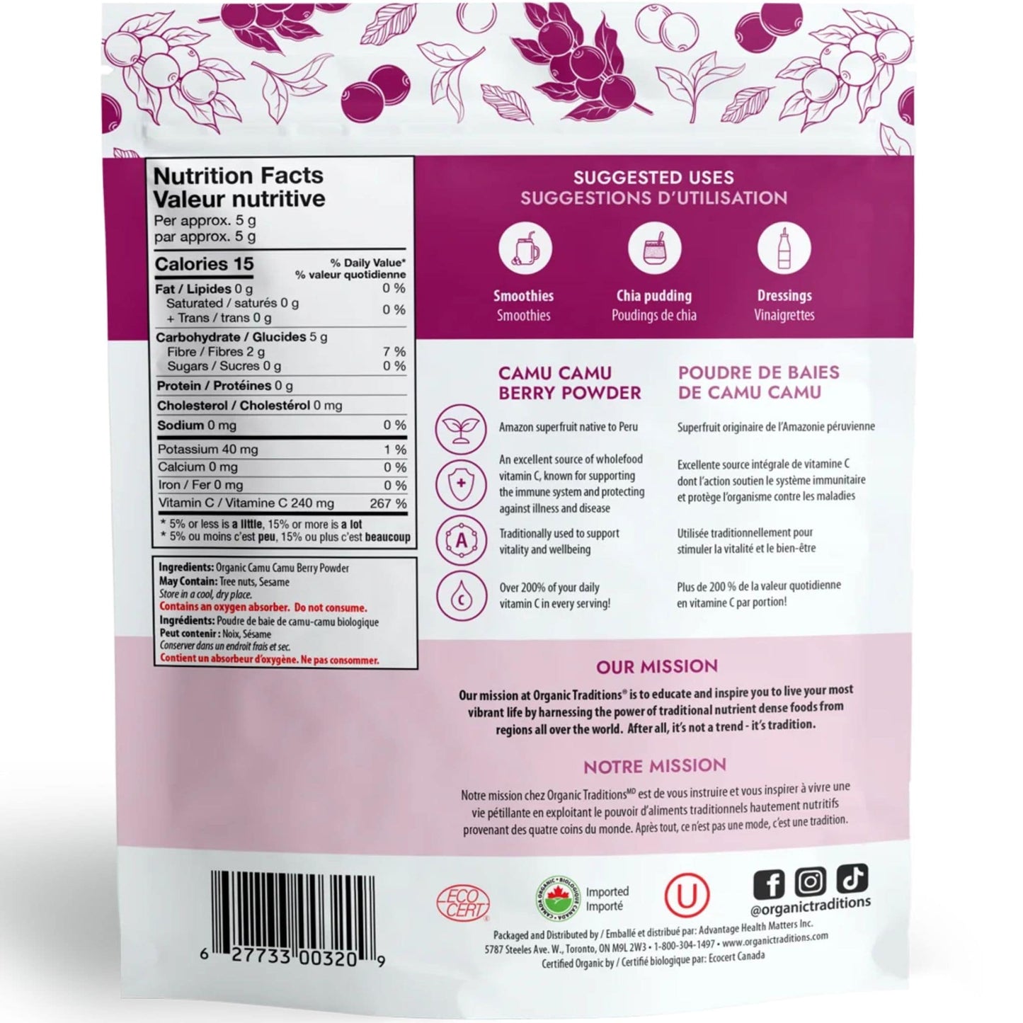 Organic Traditions Camu Camu Berry Powder is nature's richest source of whole food vitamin C. This Amazon superfruit from Peru is packed with antioxidants, contains no fillers or sweeteners, and is certified organic, non-GMO, and kosher.