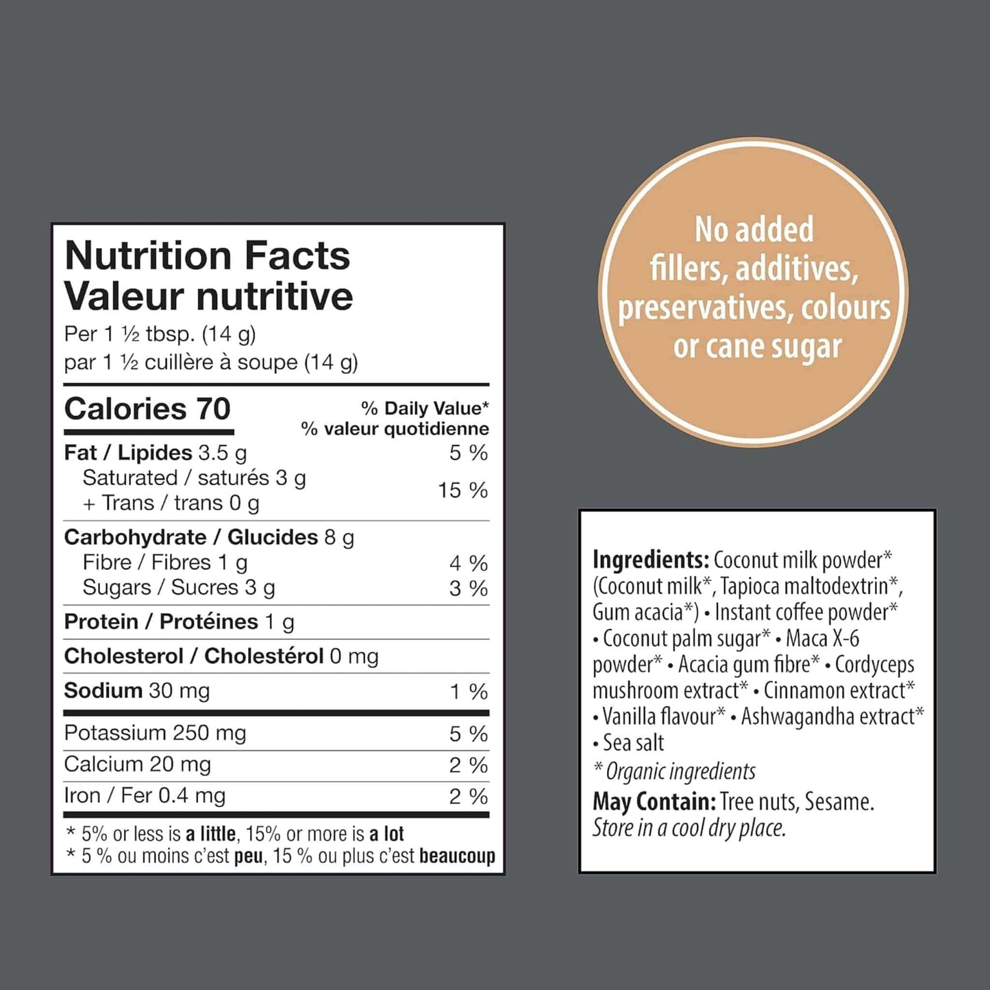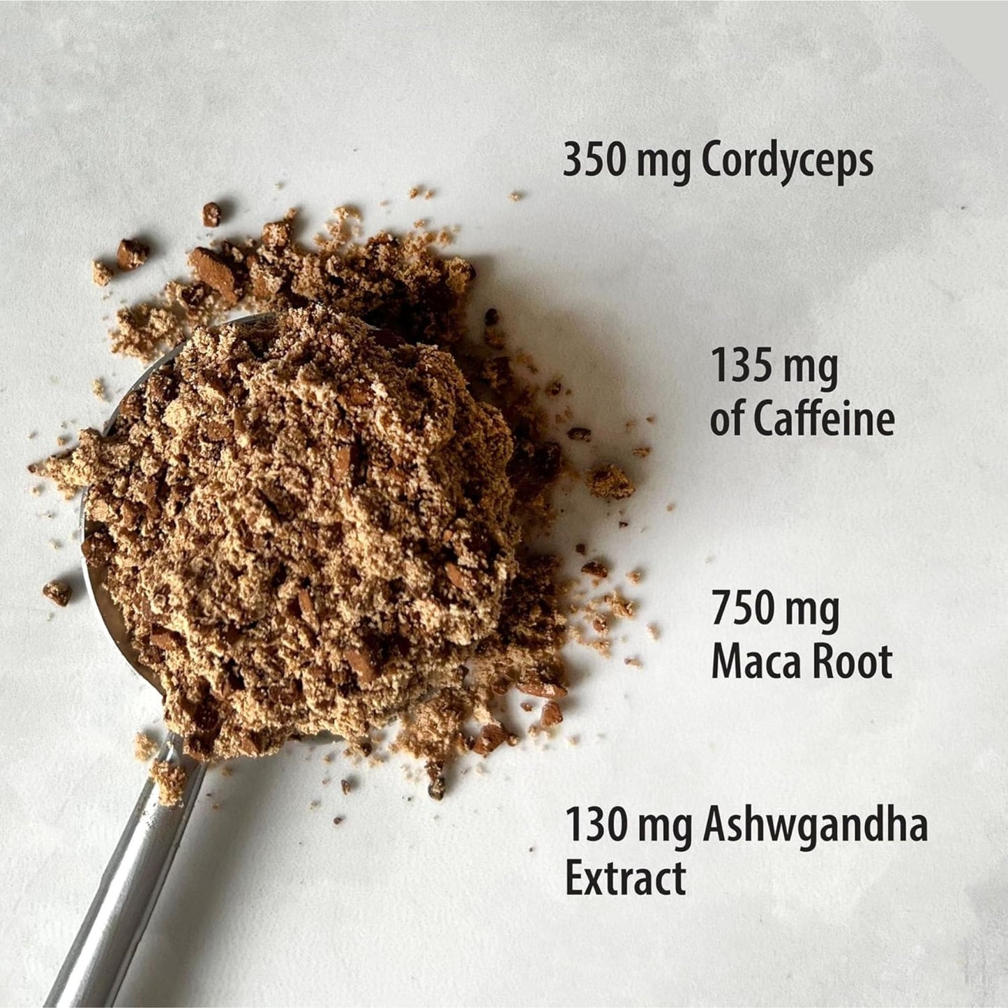 Energizing Blend: Combines organic instant coffee, cordyceps, ashwagandha extract, and maca root powder for a powerful energy boost.