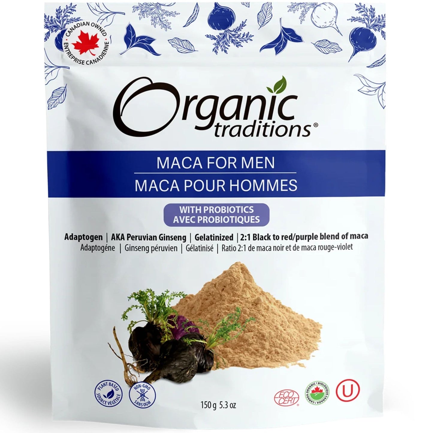 - Organic Traditions Maca Men's Powder with Probiotics is a unique blend specifically formulated for men