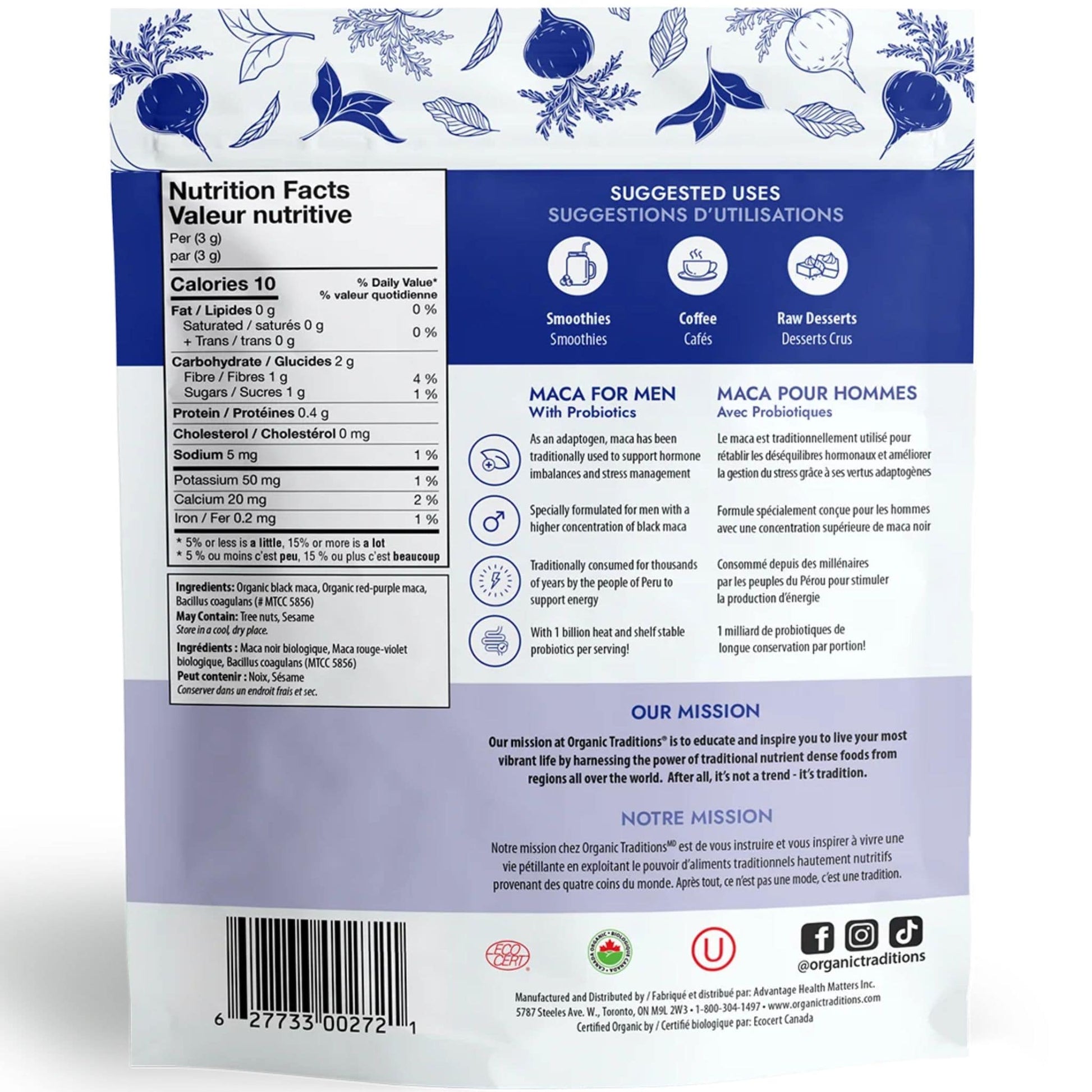 Organic Traditions Maca Men's Powder with Probiotics Details