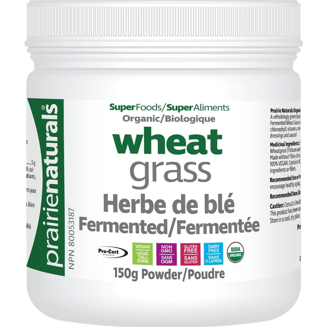 Prairie Naturals Organic Fermented Wheat Grass Powder Details