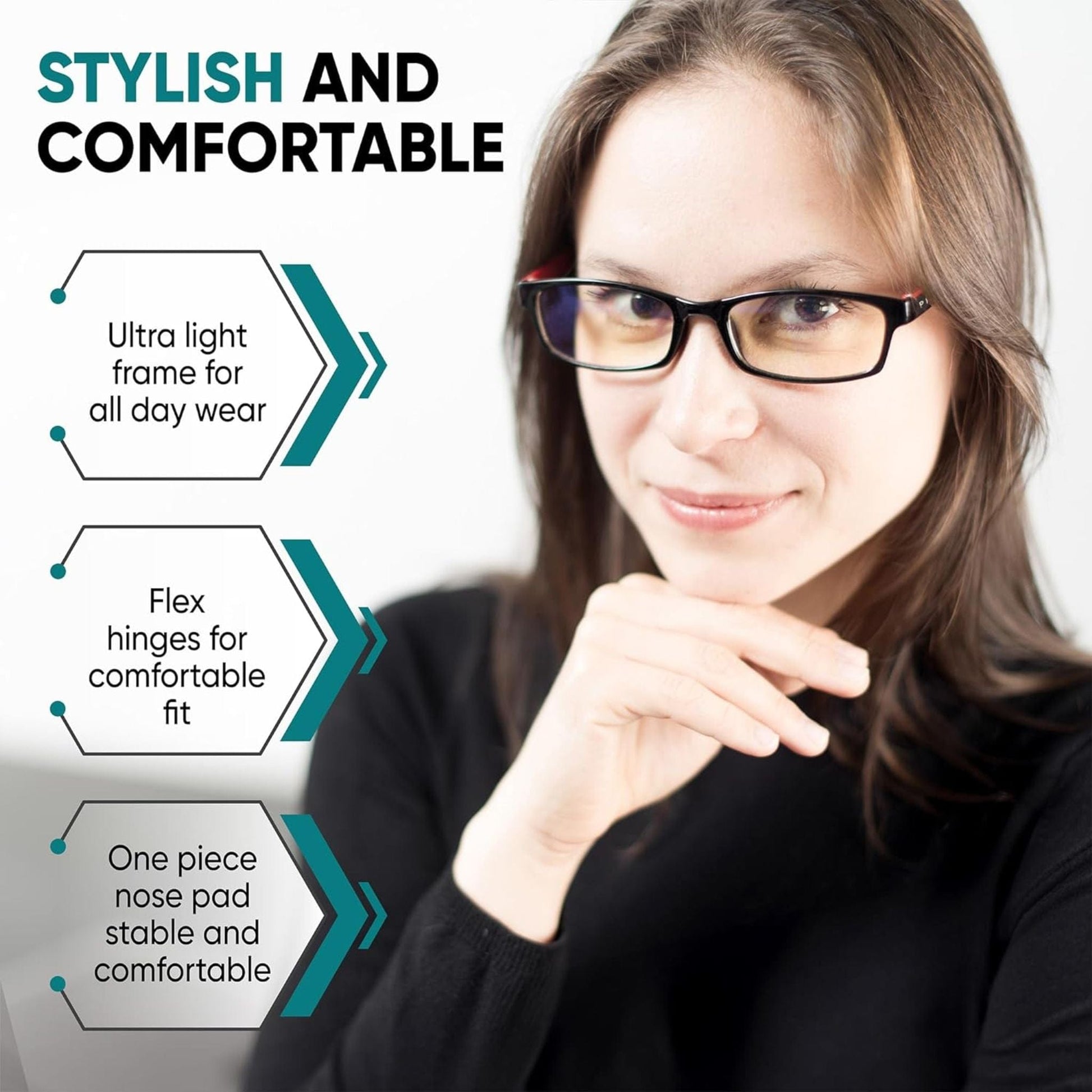 Feel The Difference Instantly: Get rid of tired eyes, eye strain, headaches, and migraines as well as protect your eyes from long-term damage. With our computer glasses, you notice a difference within the first hour.