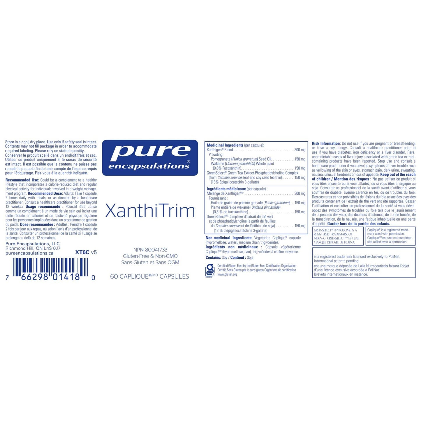 - XanthiTrim contains 300 mg of Xanthigen per serving, a synergistic combination of fucoxanthin from brown seaweed and pomegranate seed oil that promotes healthy fat metabolism and utilization