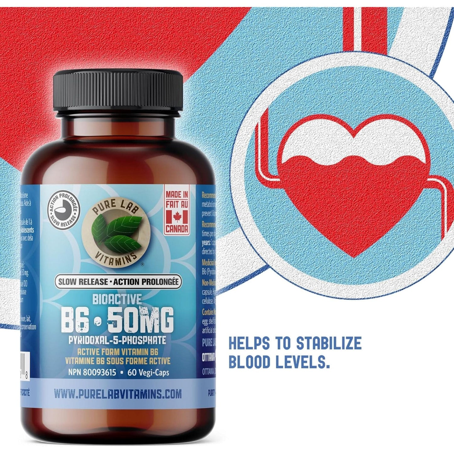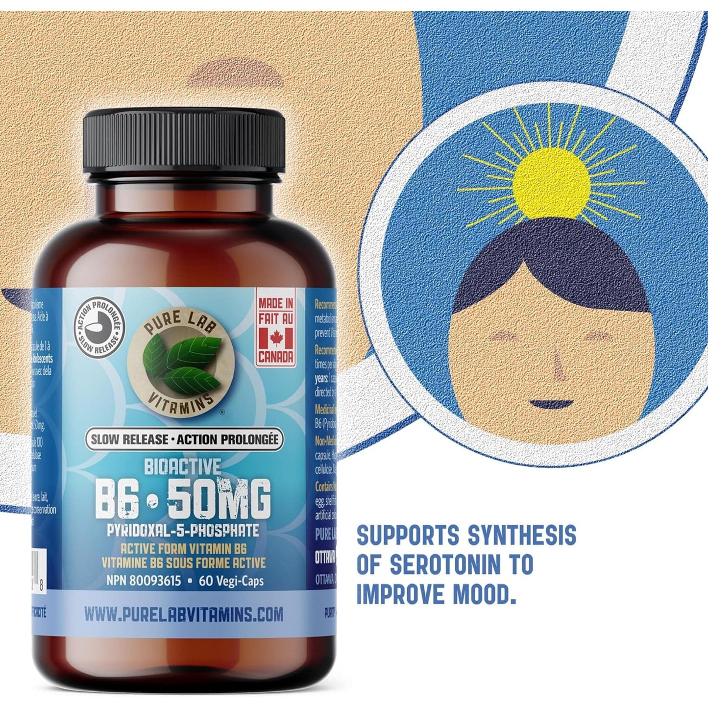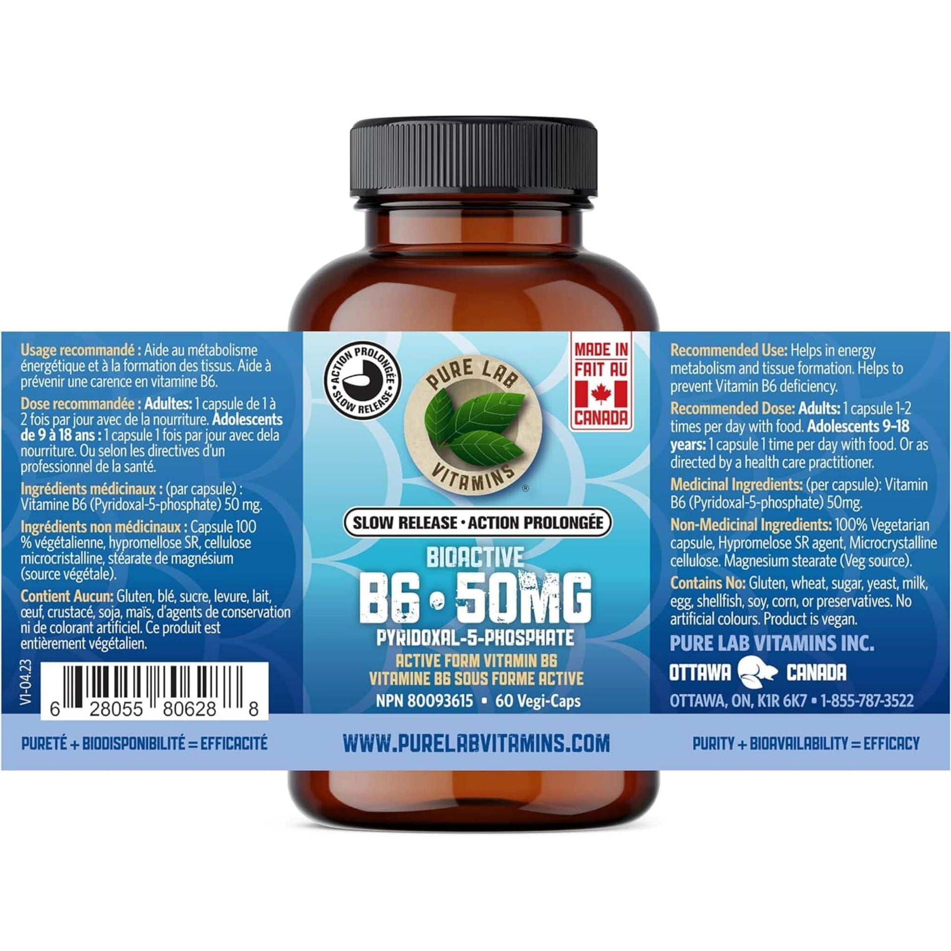 Pure Lab Vitamins Bioactive B6 50mg Slow Release, 60 Capsules