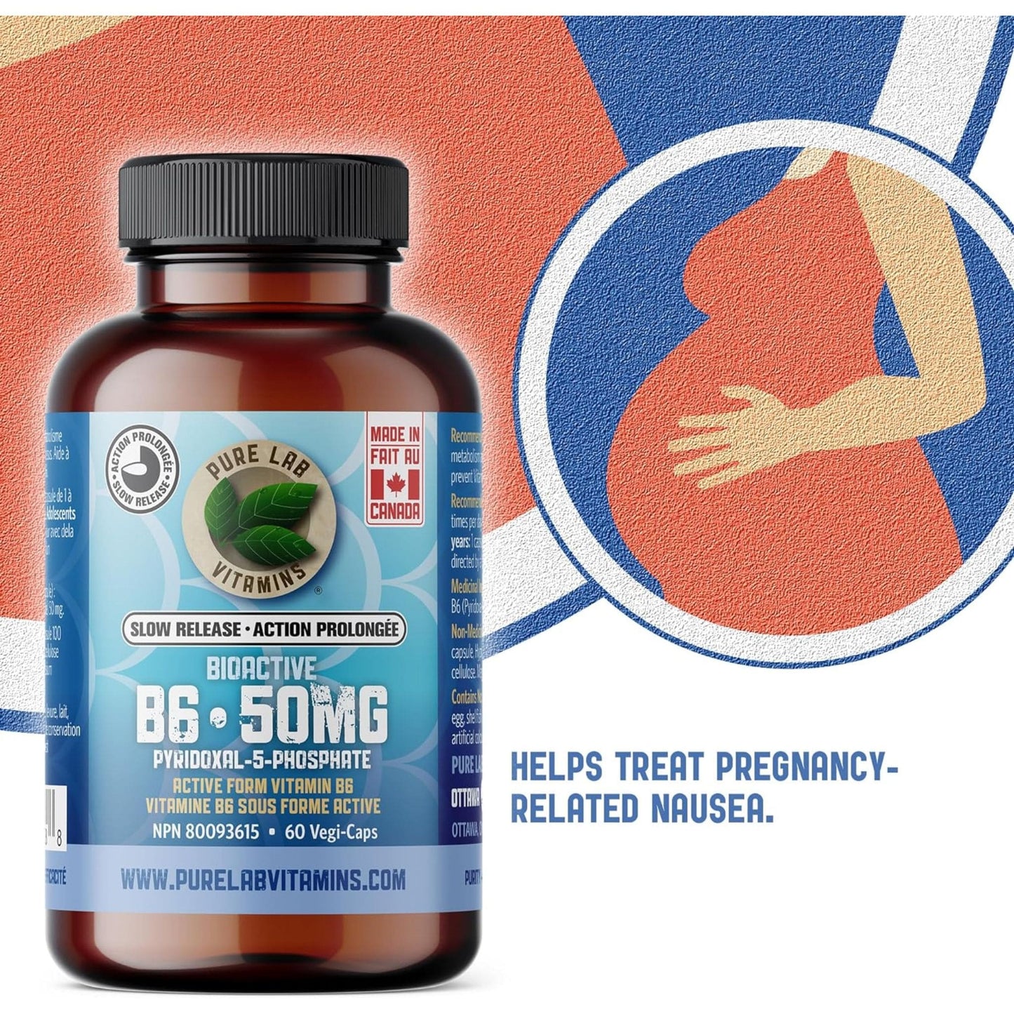 PureLab’s B6 Slow Release Formulation helps maintain blood levels for 4–5 hours. PureLab’s Slow Release BioActive B-6 in 50 milligram per capsules ensures a more gradual uptake of the vitamin—in its active form—for a safer way to maintain adequate levels of this nutrient through the day.