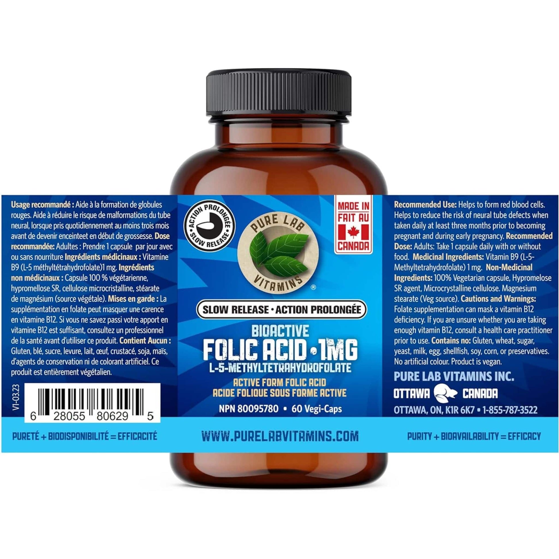 Pure Lab Vitamins Bioactive Folic Acid Slow Release Features and Benefits
