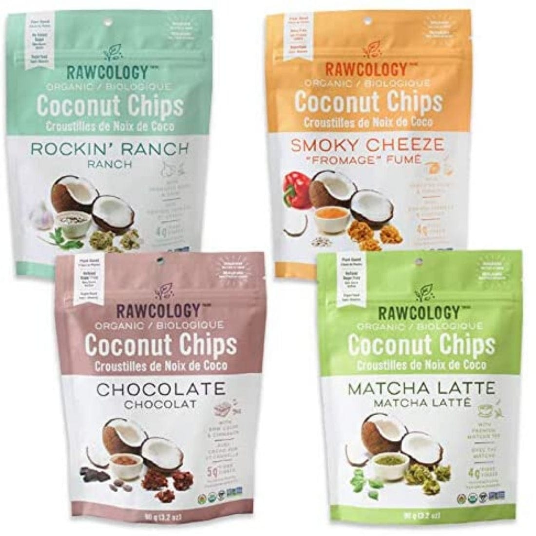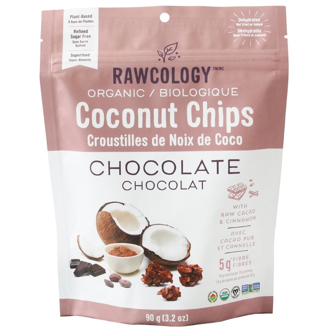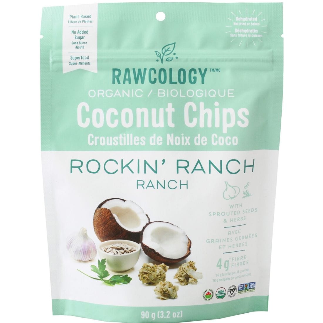 Satisfy your healthy desire for delicious! Coconut Chips are the Newest SuperFood Snack Craze. Highly nutritious and rich in fibre, vitamins, and minerals. Rawcology organic coconut chips are a quick, nutritious solution to between-meals hunger and energy crashes. Rawcology Coconut Chips are grown sustainably. Contains NO soy, dairy, eggs, gluten, flavours, colours, preservatives, artificial sweeteners, or GMO ingredients.
