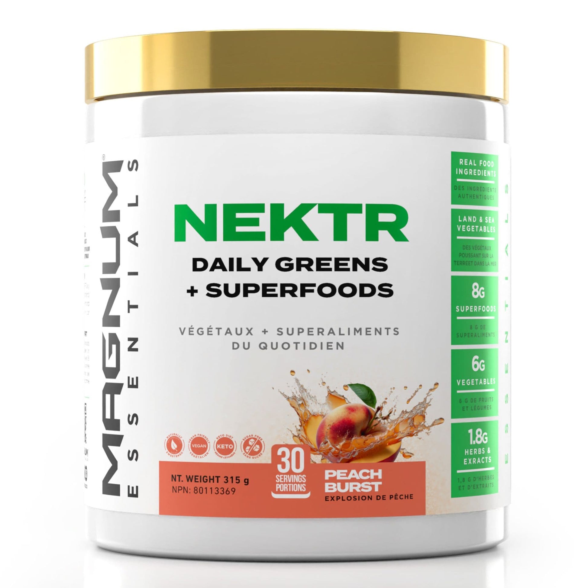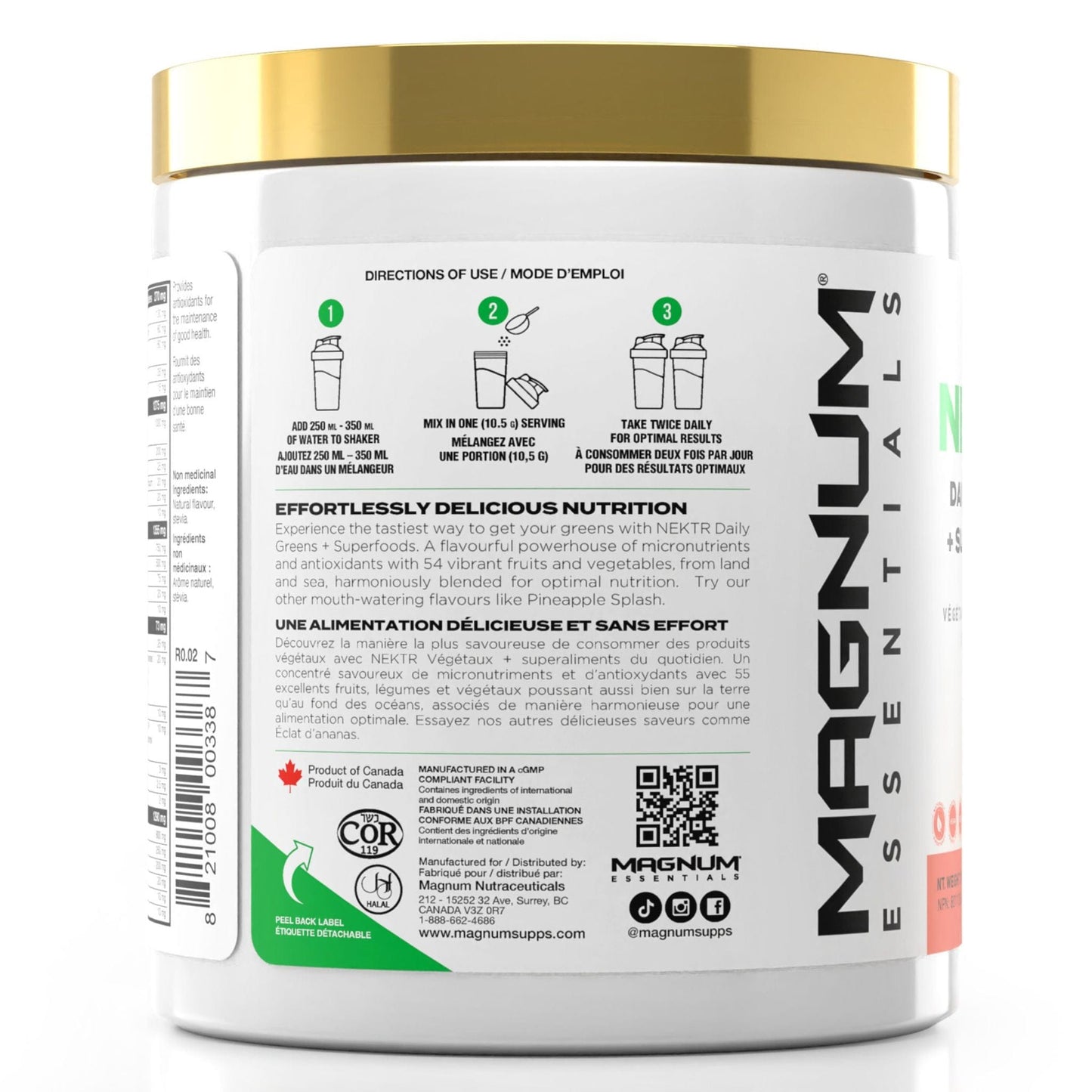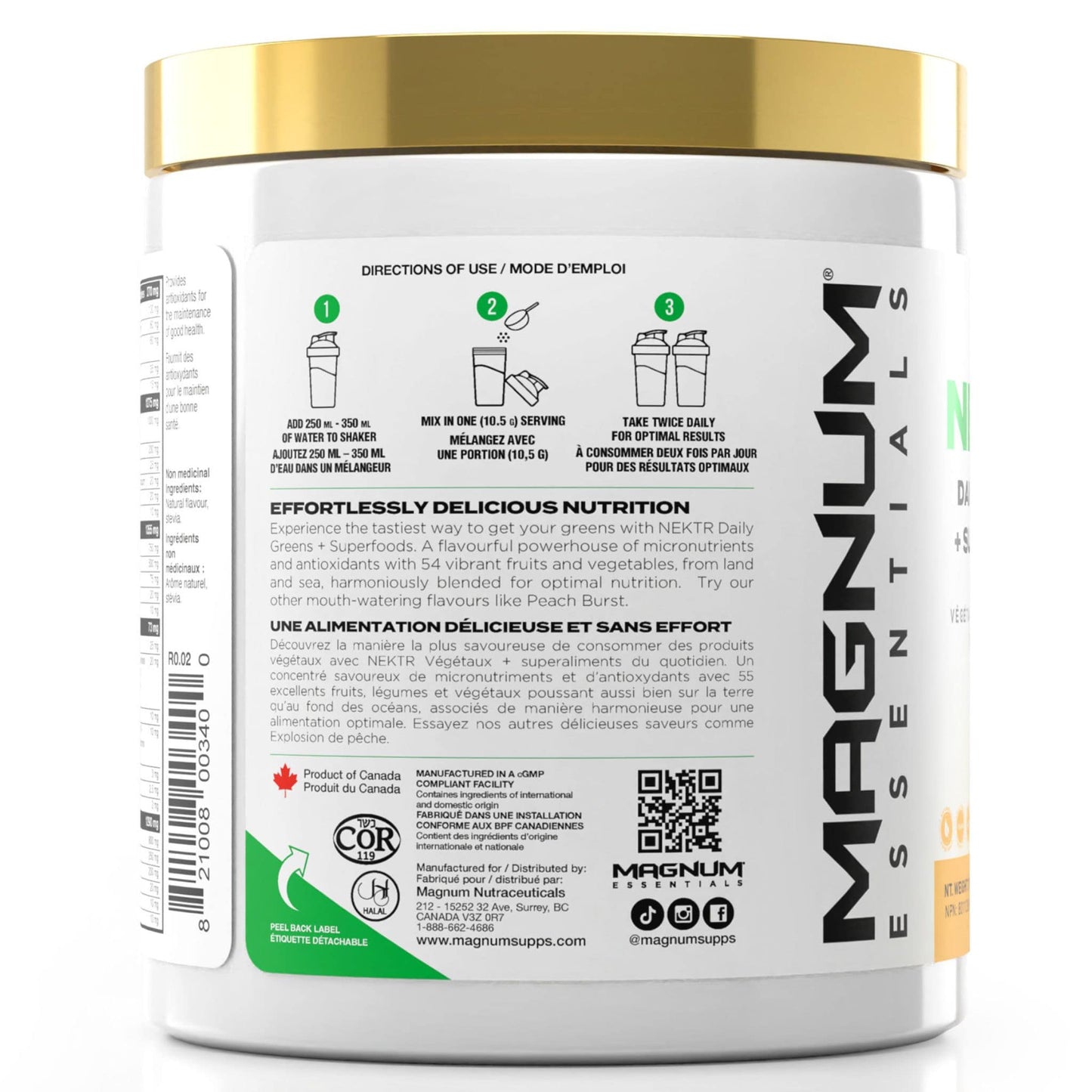 Explore the power of Magnum Essentials NEKTR! This Daily Greens and Superfoods powder is a rich source of micronutrients and antioxidants with 55 fruits and vegetables. Designed to support a healthy lifestyle, Magnum Essentials NEKTR offers a vegan, dye-free, lactose-free, and sugar-free formula that is both delicious and nutritionally dense. Easily incorporate Magnum Essentials NEKTR into your routine, whether on its own, blended with beverages, or added to recipes. In a world where many struggle to meet their daily fruit and vegetable intake, Magnum Essentials NEKTR provides a convenient and effective solution. With no preservatives, Magnum Essentials NEKTR guarantees a clean, pure product you can trust for daily nutrition.