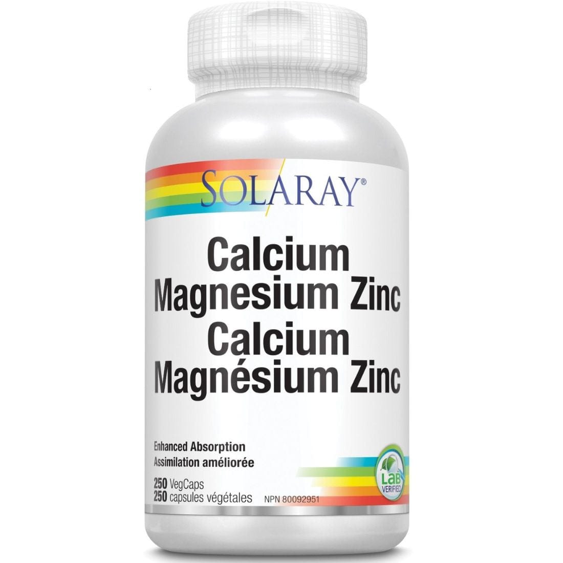 Solaray Calcium Magnesium Zinc, 250 Vegetable Capsules
