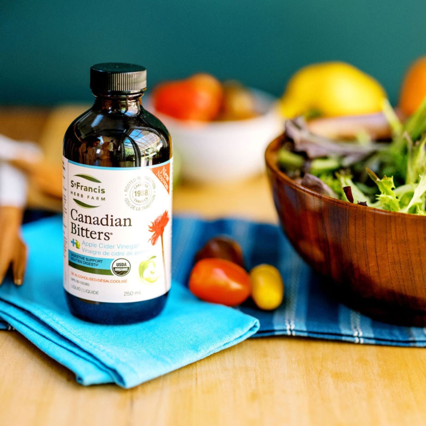 Rediscover the joy of enjoying your favorite foods with the support of St. Francis Canadian Bitters Plus Apple Cider Vinegar. Elevate your digestive health naturally!