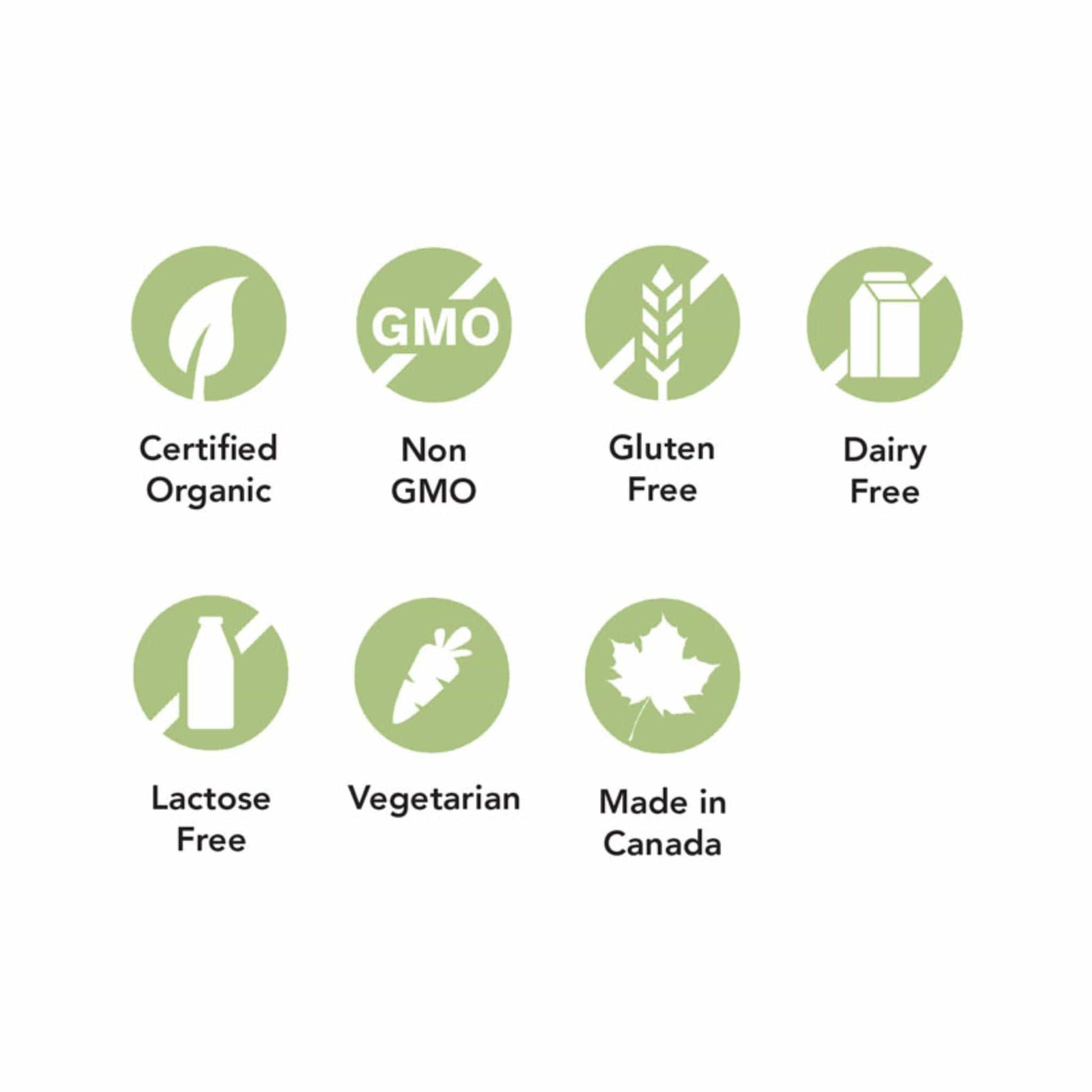 - Made in Canada: Certified organic, gluten-free, non-GMO, and suitable for vegetarians, the product proudly bears the 'Made in Canada' tag.