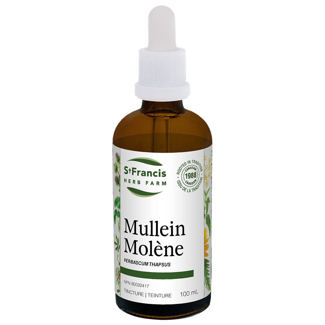 Adults: Take 0.8-1.3 ml (25-40 drops) of St. Francis Mullein 3 times daily in a little water on an empty stomach.